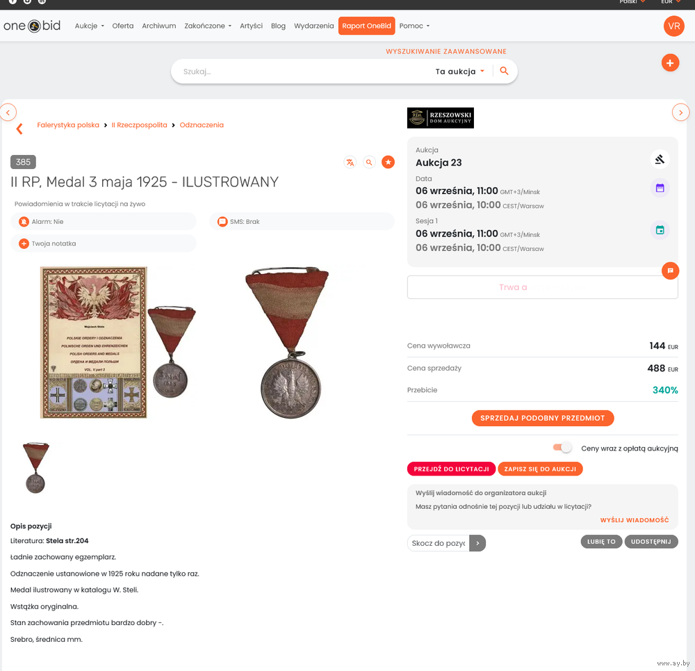 Для любителей поговорить про цены - прилагаю последний проход такой медали на аукционе = 488 евро
