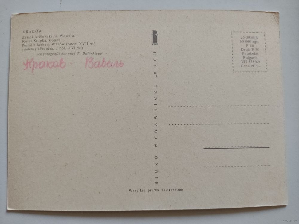 Польская открытка с видом одного из покоев Вавельского замка в Кракове. 1969г.