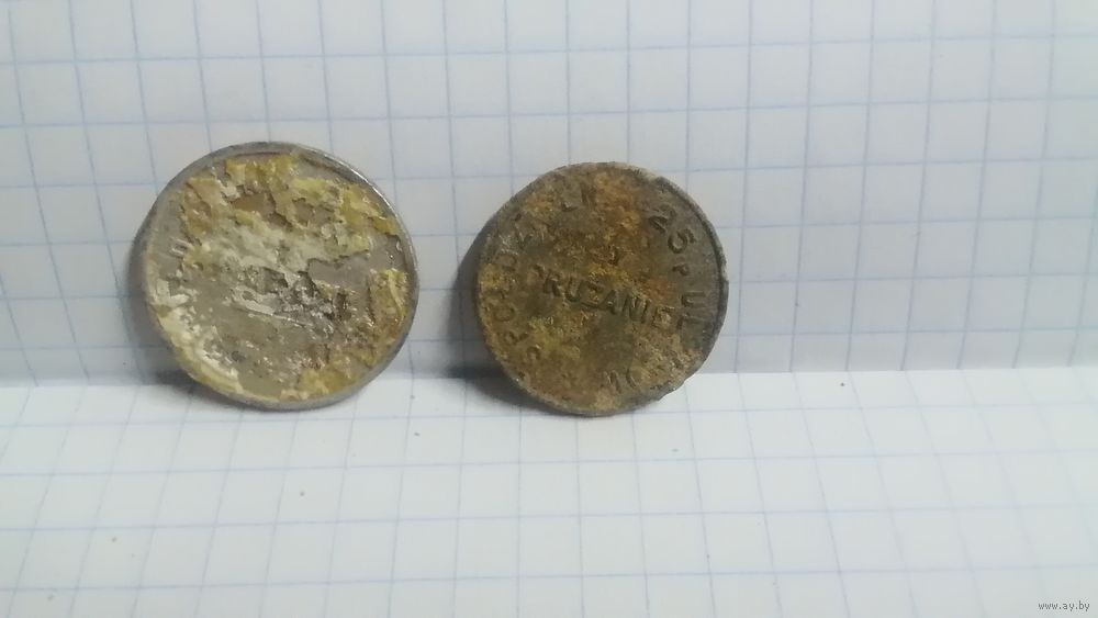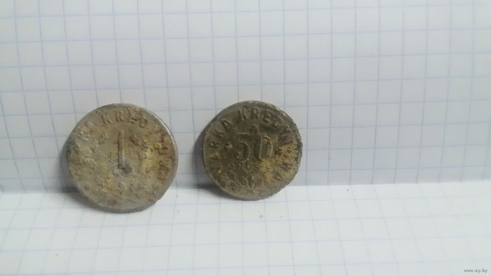 Польские военные кредитные марки 25 уланского полка г. Пружаны. 1 злотый и 50 гроши .