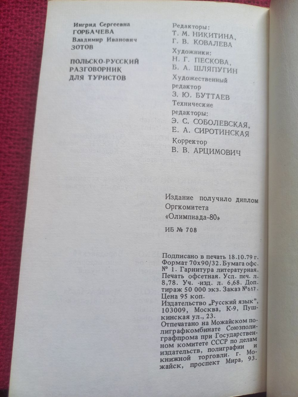 Польско-русский разговорник для туристов. Олимпиада 80.