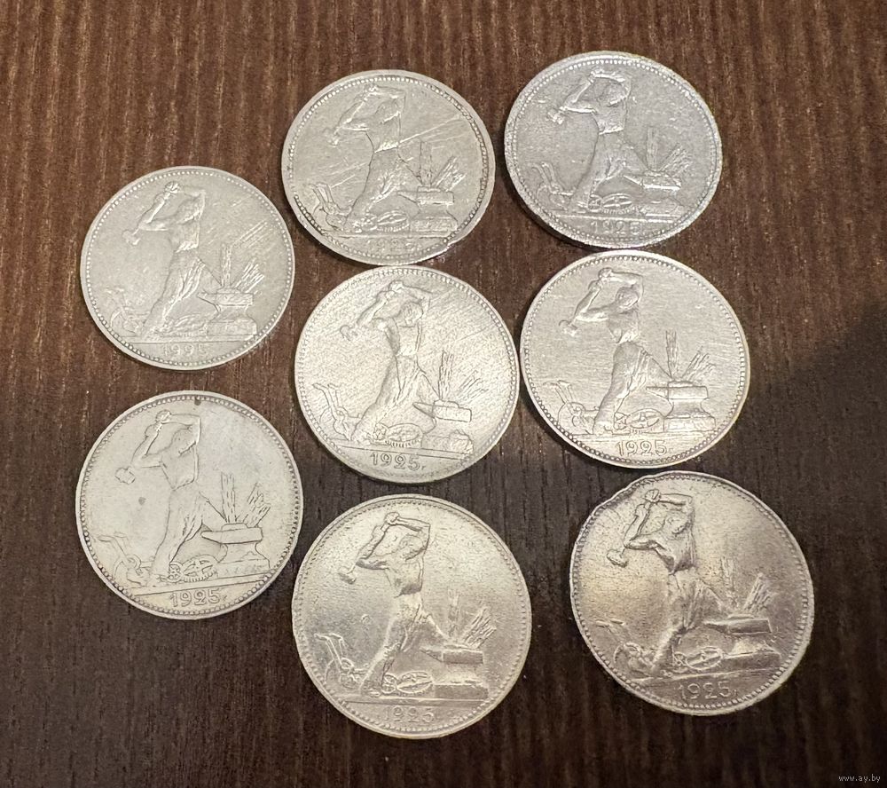 Лот полтинников 1925 год . ( П.Л ) . Серебро