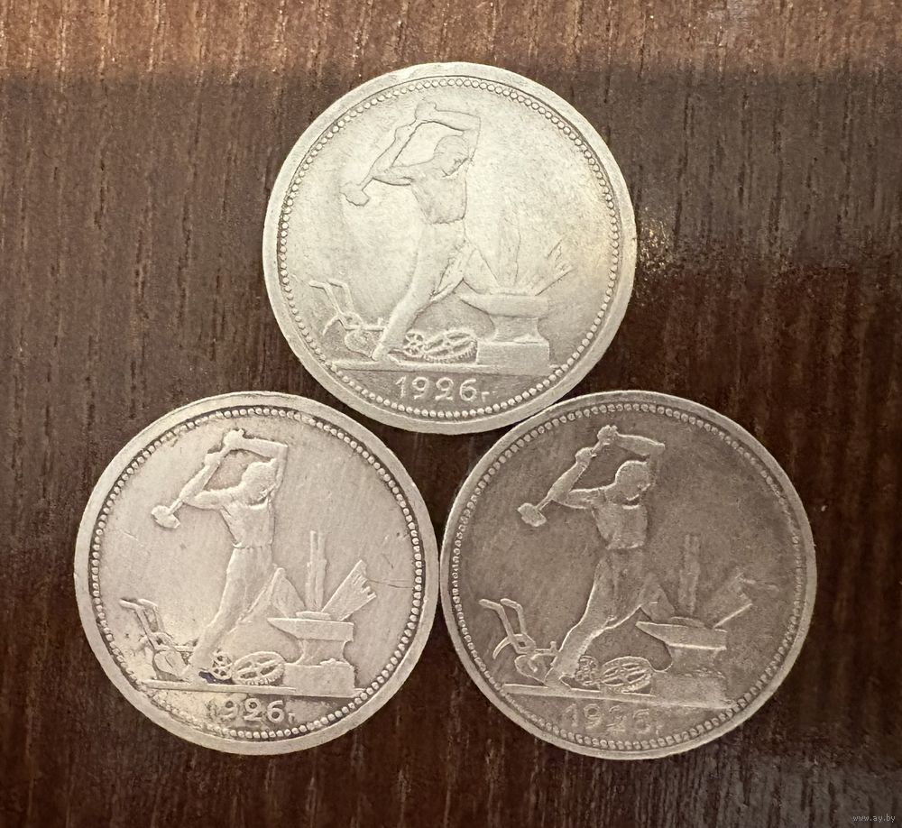 Три полтинника 1926 года . ( П.Л ) . Серебро.