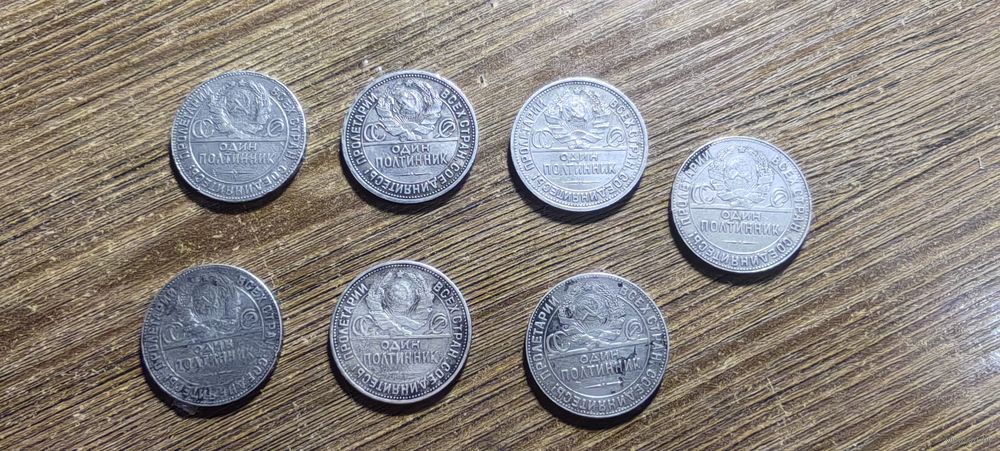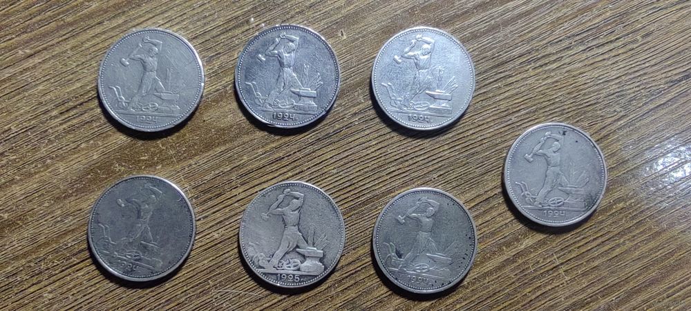 Полтинники 7 монет, 6 монет 1924 года и 1 монета 1925 года.