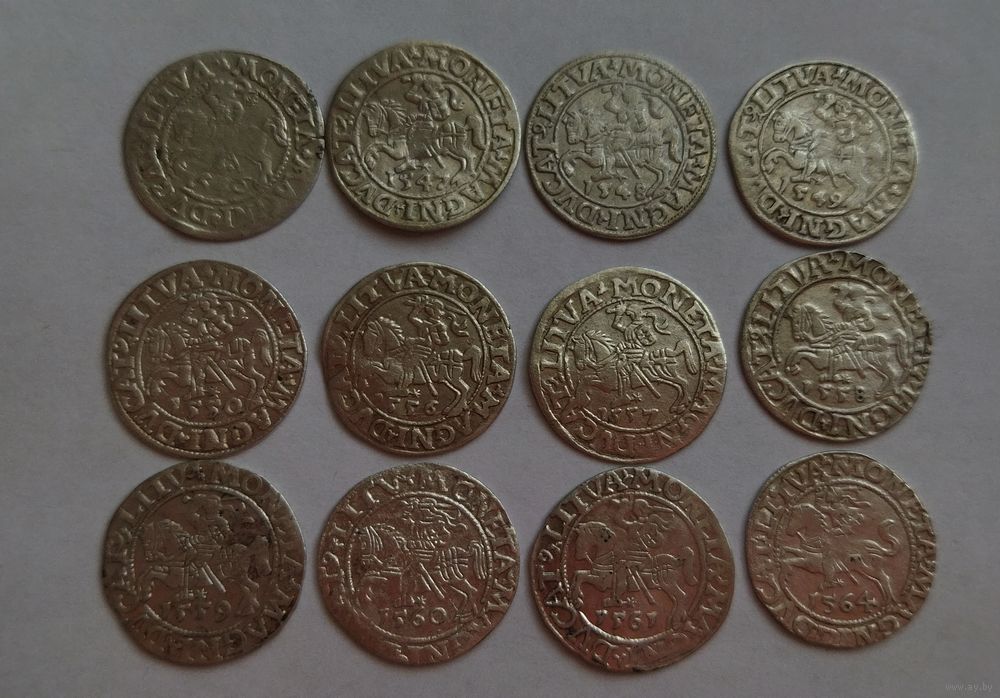 Подборка 12 шт полугрошей 1546, 1547, 1548, 1549, 1550, 1556, 1557, 1558, 1559, 1560, 1561, 1564
