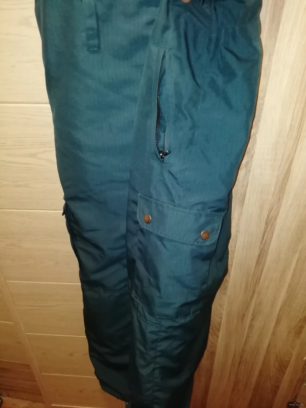 Полукомбинезон осенне-зимнего сезона. Ткань рипстоп. Внутри наполнитель. Цвет темно-зеленый. Камера не передает точный цвет. Ярлык срезан. Использовался очень мало. После стирки. Пятен и дыр нет. Два боковых кармана на штанах с металлическими пуговицами. Два боковых кармана на молнии. Два больших нагрудных кармана с металлическими пуговицами. Один маленький карман на пуговице и два маленьких отделения. Металлические застежки для подтяжек. Молния с двойным механизмом. Очень прочная ткань. Теплый и легкий комбинезон. Возможно использование поясного ремня. Вес 1300 грамм. Комбинезон был выдан сотруднику аэродрома в Беларуси. Использовался несколько раз.