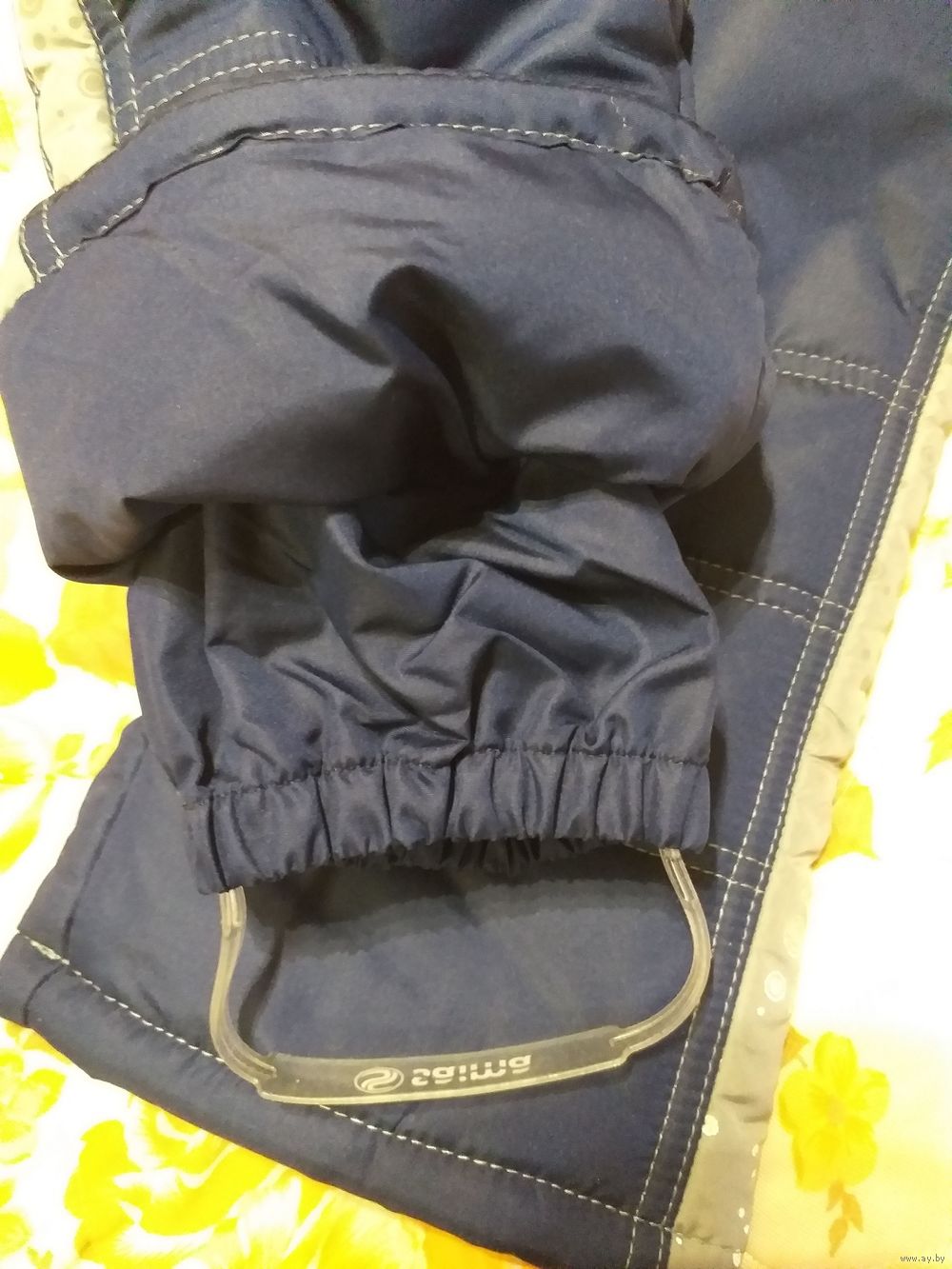 Низ штанин с защитной муфтой от снега и отстегивающимися силиконовыми штрипками усиливающими фиксацию на ноге и защищающими от попадания влаги и снега внутрь обуви.