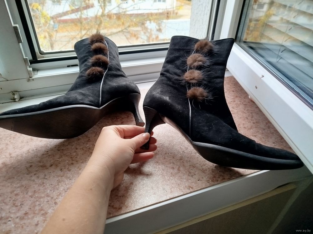 Стильные итальянские полусапожки на каблуках - рюмках. На узкую ногу.
