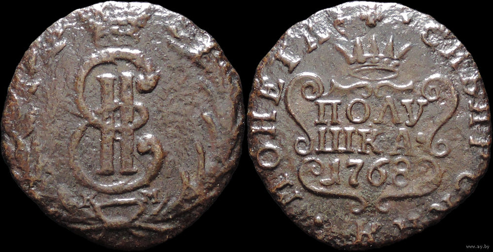 Полушка 1768 КМ, Отличная! С 1 Рубля! Смотрите другие лоты!