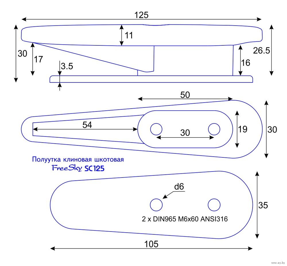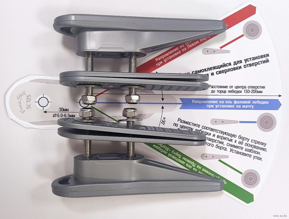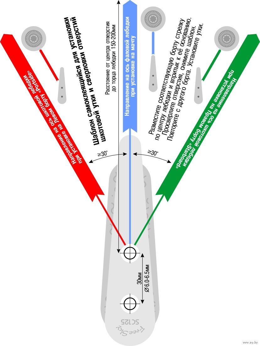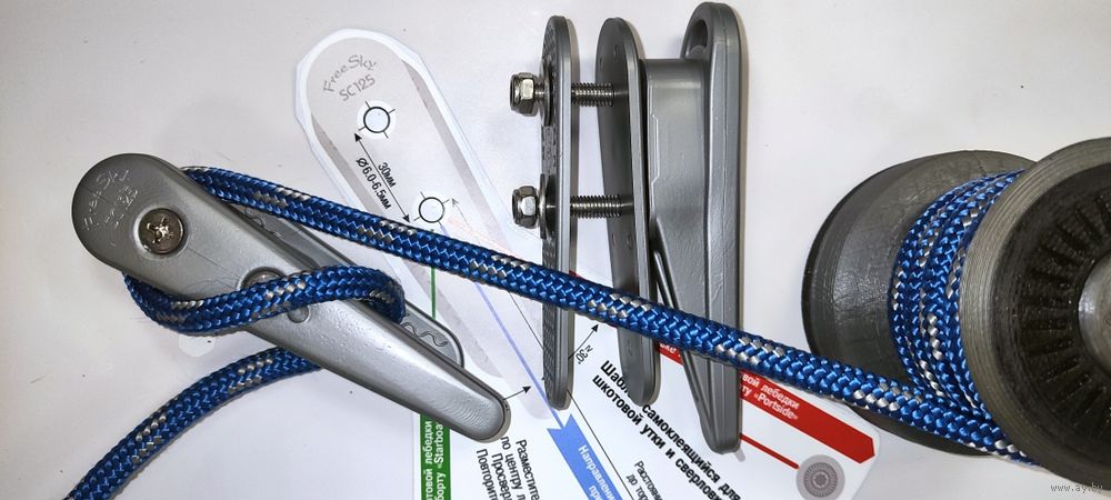 Эффективно заклинивает троса размером от 6 до 12мм. Оптимальный размер - 8-10мм. Нижняя площадка защитит гелькоут вашей яхты от протирания. Позволяет заводить шкот как восьмеркой так и колечком. Устанавливается по шаблону под небольшим углом по отношению к ДП яхты. Используется как утка для шкотовой лебедки на парусной яхте. Для управления стакселем, генуей, спинакером или геннакером.