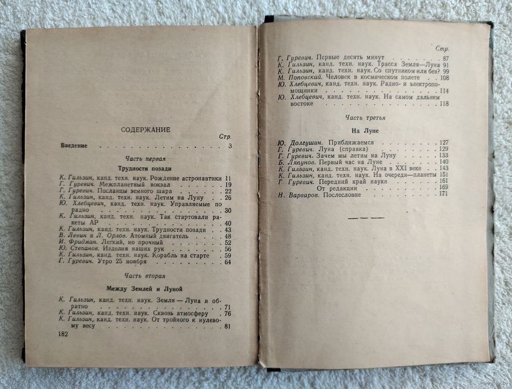 Сборник статей известных ученых, популяризаторов науки, писателей-фвнтастов, выпущенный издательством в 1956 году, еще до запуска первого искусственного спутника Земли, посвящен первому предполагаемому полету на Луну в 1974 году и представляет значительный интерес для всех, интересующихся историей космонавтики. Среди авторов: К. Гильзин, Ю. Долгушин, Б. Ляпунов, Ю. Хлебцевич, Г. Гуревич, И. Фридман, Ю. Степанов, М. Поповский. Многочисленные иллюстрации, цветные художественные форзацы с ракетами вокруг Земли и Луны.
