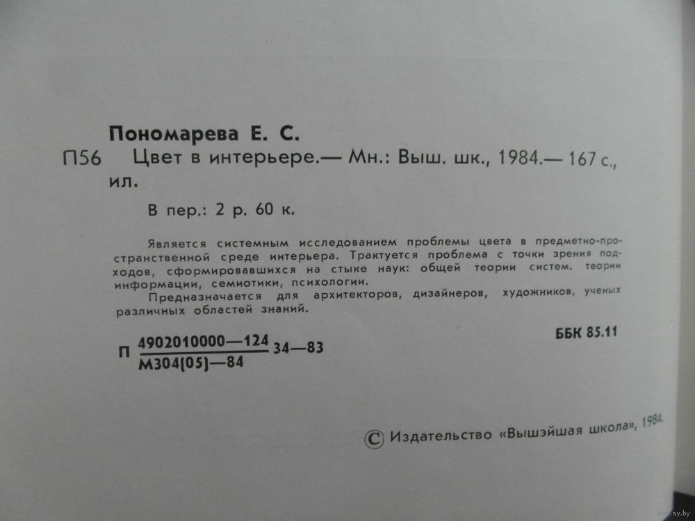 Книга является системным исследованием проблем цвета в предметно-пространственной среде интерьера. Трактуется проблема с точки зрения подходов, сформировавшихся на стыке наук: общей теории систем, теории информации, семиотики, психологии. Предназначена для архитекторов, дизайнеров, художников.