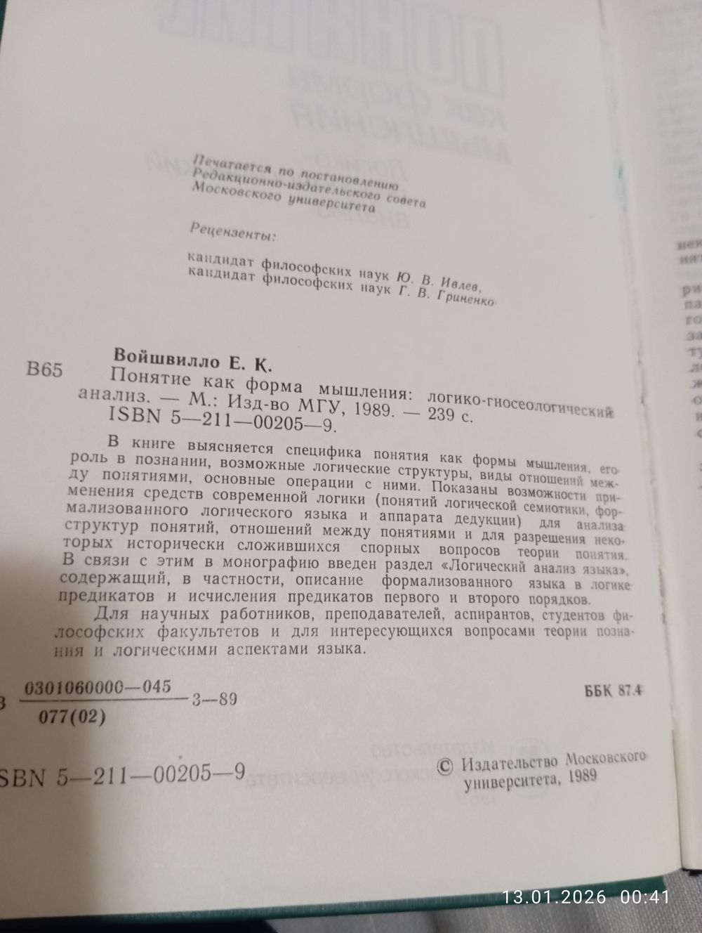 Войшвилло Е. Понятие как форма мышления. Редкая. МГУ 1989. В хорошем состоянии, тв переплет. 239 с. Тираж 5000. Возможность отправки Белпочтой, полная предоплата