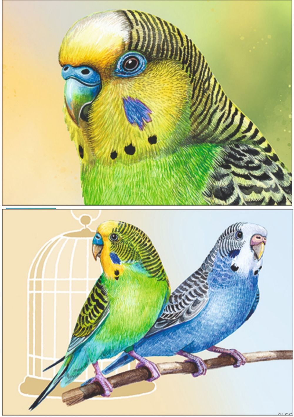 Попугайчики. Из серии "Домашние питомцы".Открытки, глянец