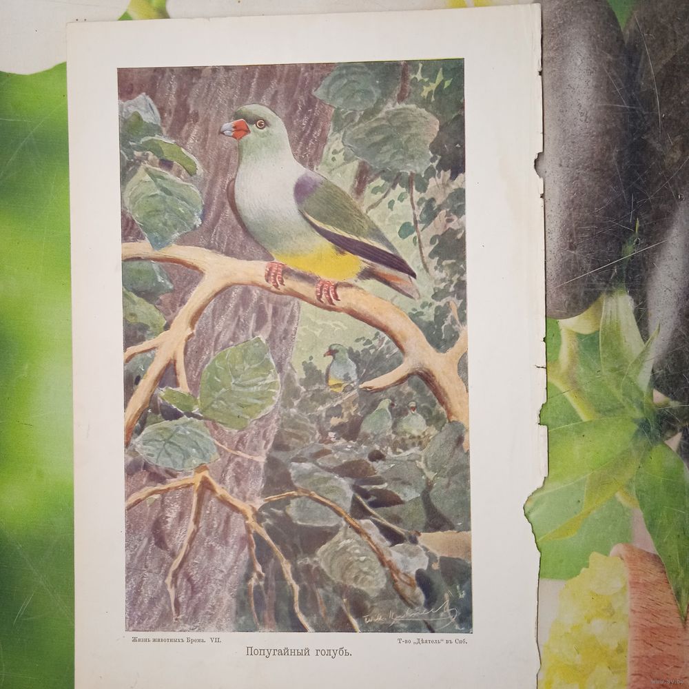Попугайный голубь. Литография СПБ. Энциклопедическая гравюра конец 19века 25х17см. РАСПРОДАЖА КОЛЛЕКЦИИ.