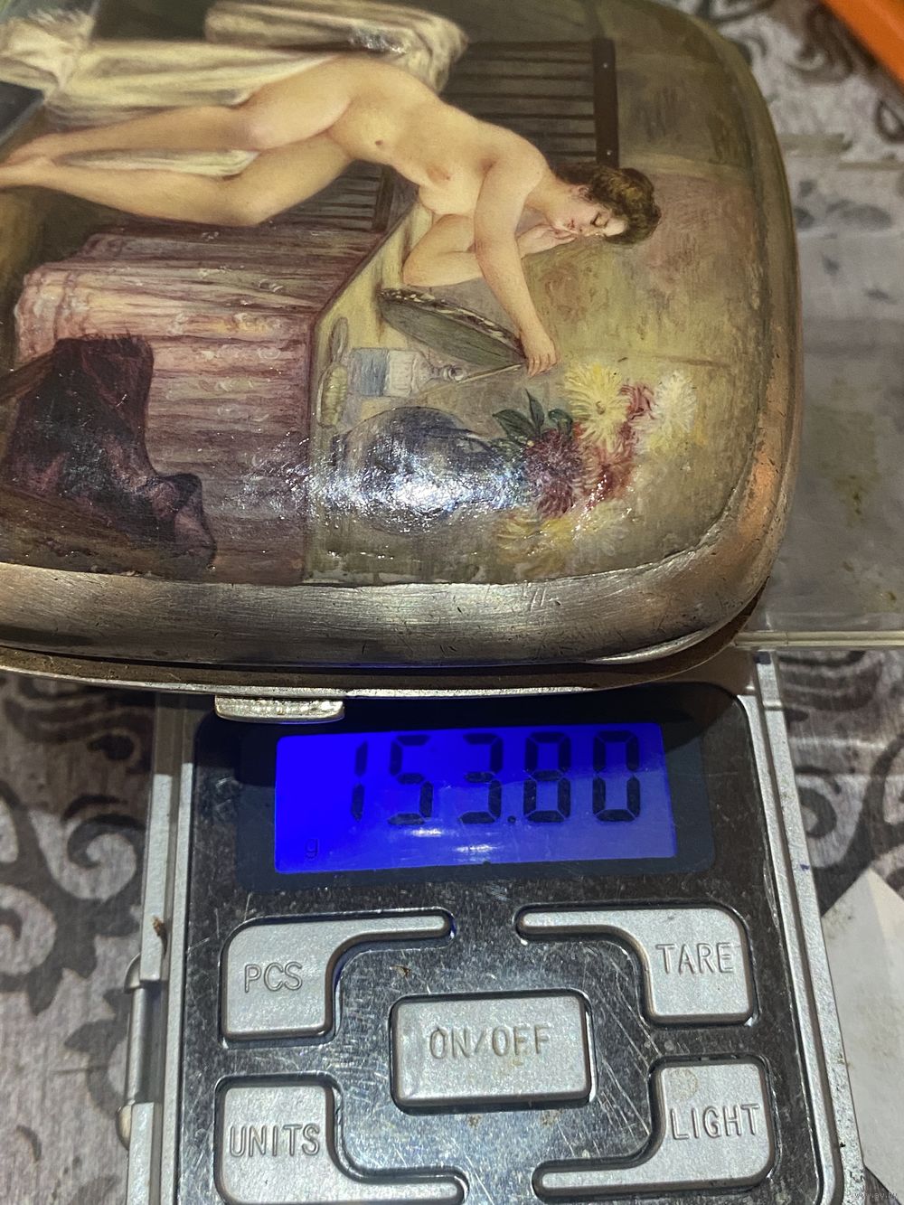 Портсигар серебро с эмалью , живопись,эротика,проба-935,вес- 153,8