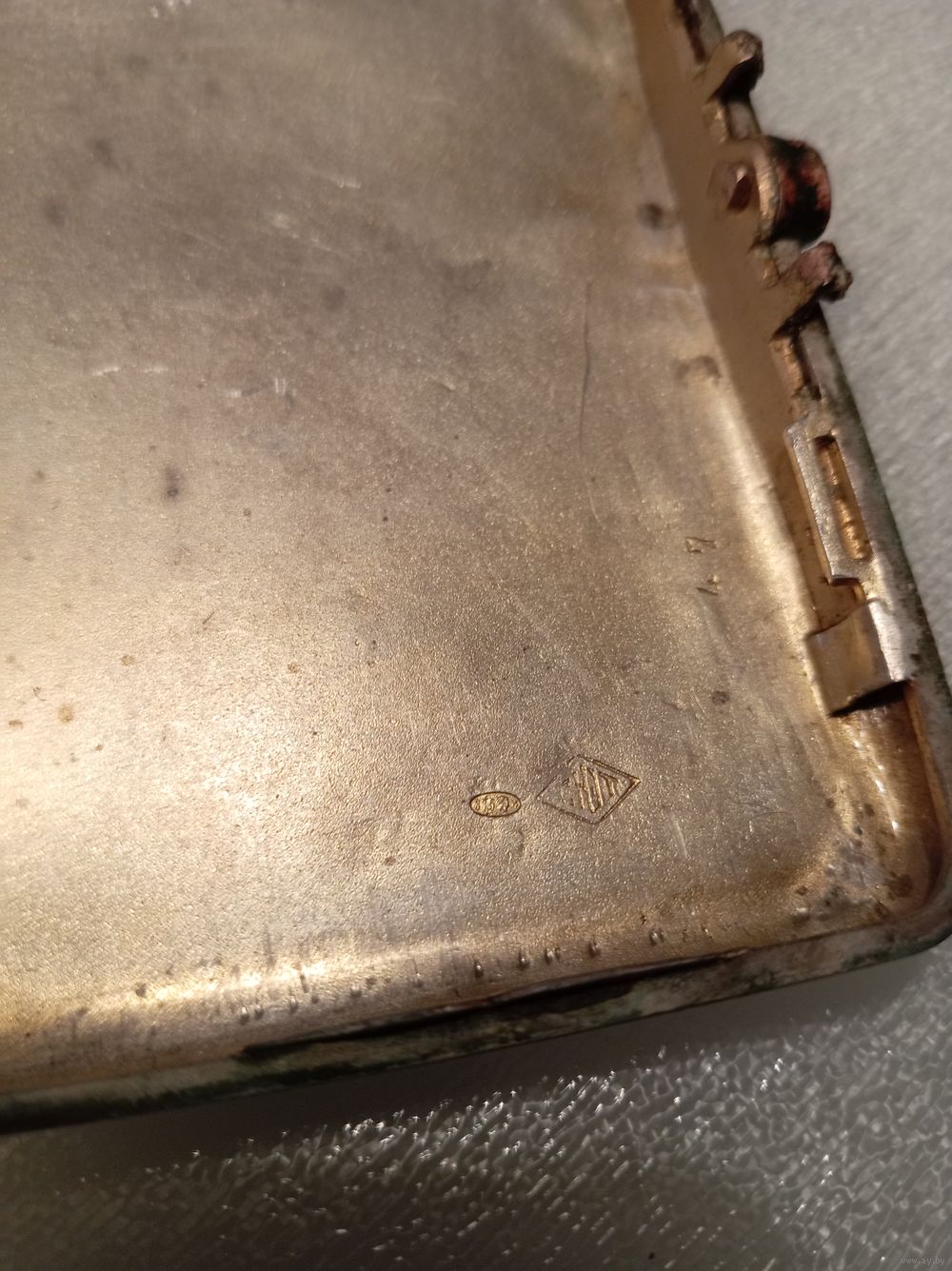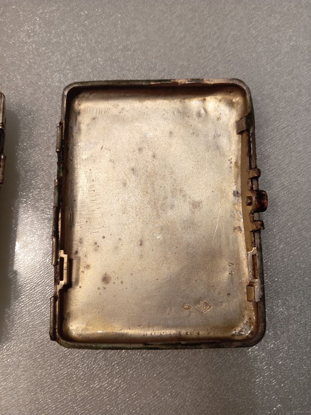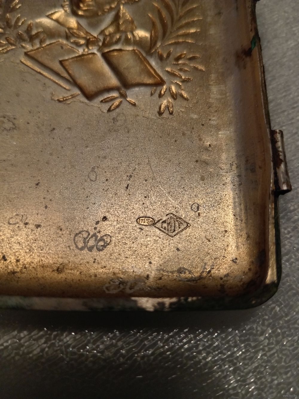 На каждой крышке портсигара по 2 клейма: СЮТ(СоюзЮвелирТорг), и одесское пробирное(875 голова рабочего с молотом вправо каппа).