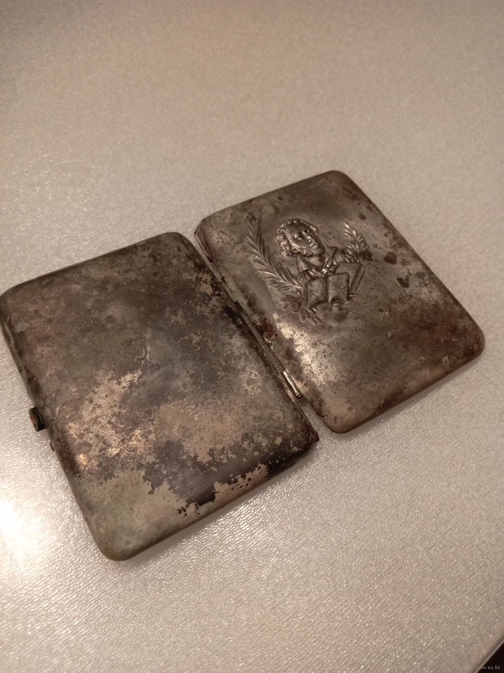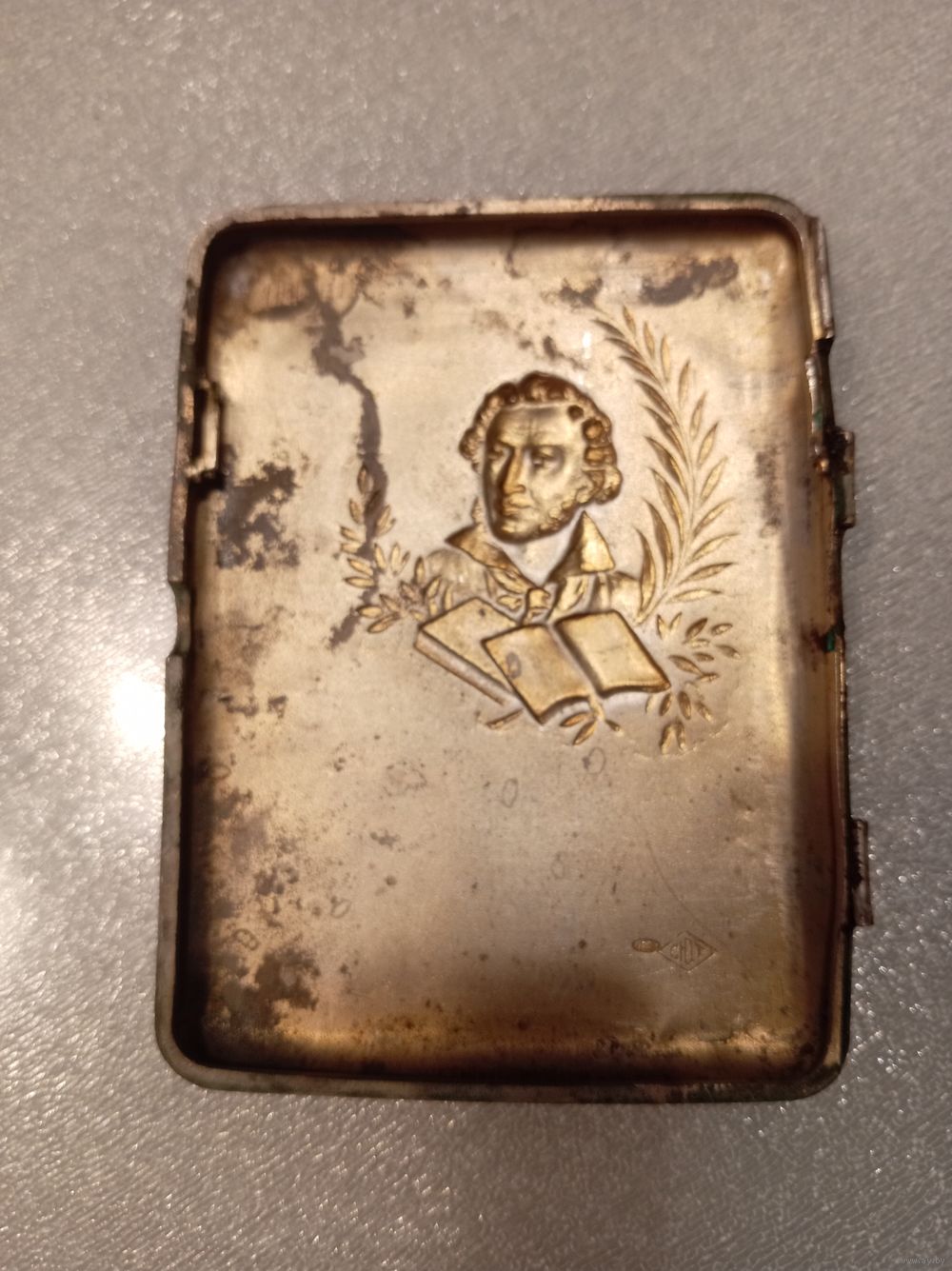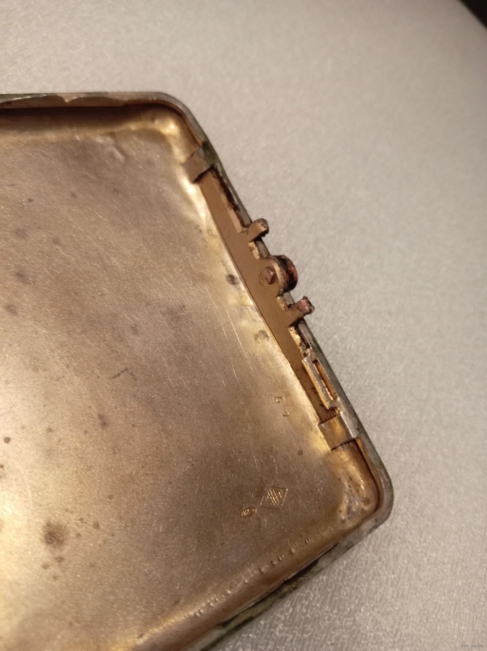 На каждой крышке портсигара по 2 клейма: СЮТ(СоюзЮвелирТорг), и одесское пробирное(875 голова рабочего с молотом вправо каппа).