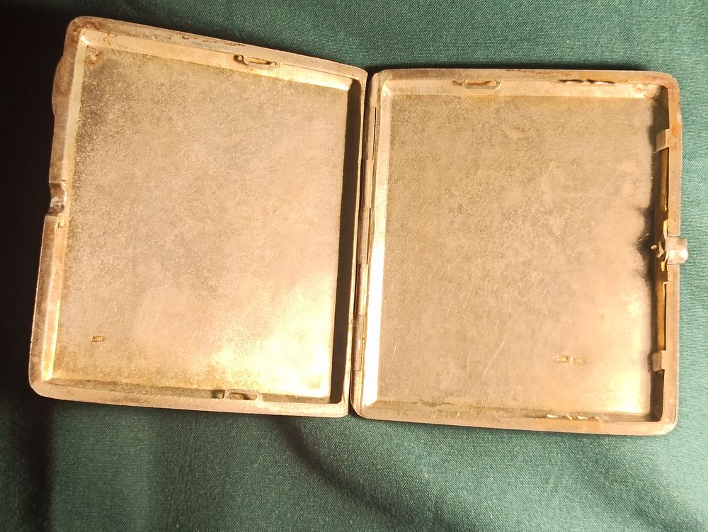 Портсигар серебряный, клеймо в форме лопатки 875 проба слевой стороны голова рабочего, 1927-1955-е годы, вес 122,31 гр., размер 8 х 9 см. Внутри легкая позолота. На наружной крышке ручная штихельная резьба (в центре графический геометрический авангардный, а по бокам растительный орнамент). Кнопка открывания с рубиновым камешком . Винтаж . Состояние хорошее см. на фото. Цена в бел. руб. примерно 2,6 у.е за грамм по курсу . Спасибо за интерес к лоту. Телефон для связи указан в контактных данных, вопросы и предложения желательно присылать через Viber. Передача предмета и получение денег в г.Минске, возможна в рабочие дни после 18-00 в центре города по договоренности. Расчет наличными лично с продавцом при получении лота. Отправка Белпочтой, Европочтой за счёт покупателя. Полная предоплата на карту до отправки лота по почте . Если у Вас есть другие варианты - предварительно оговаривайте их по телефону.