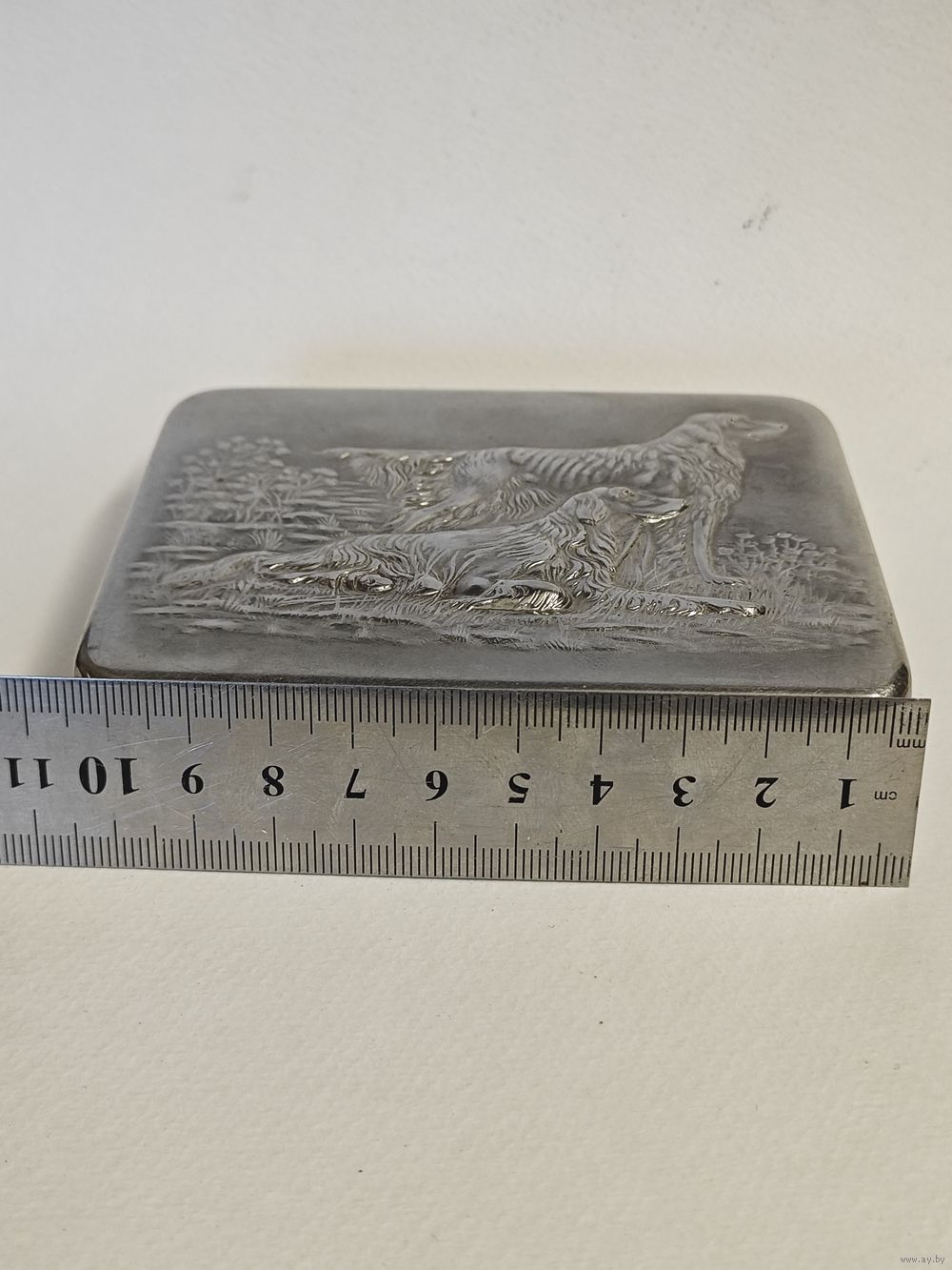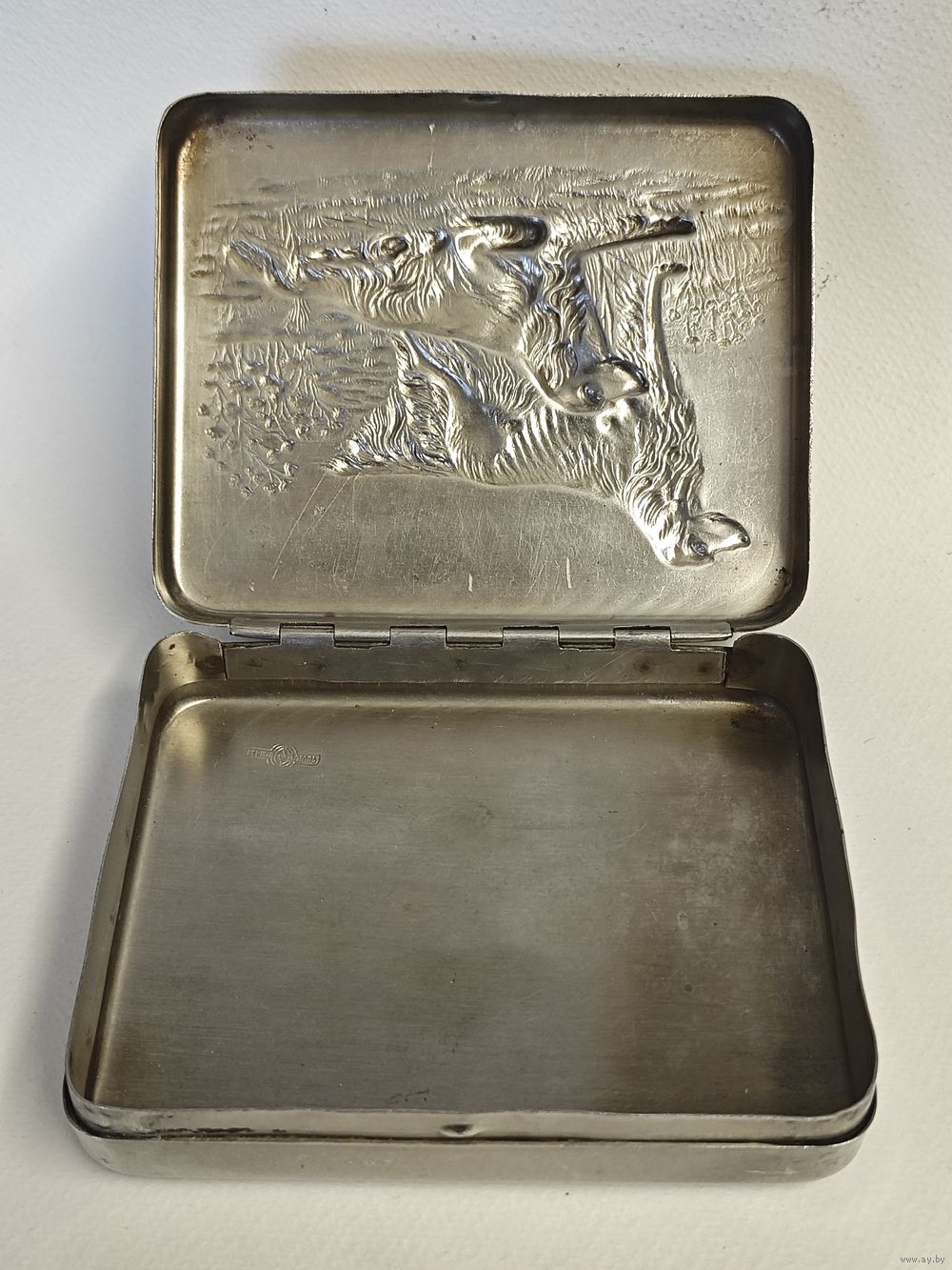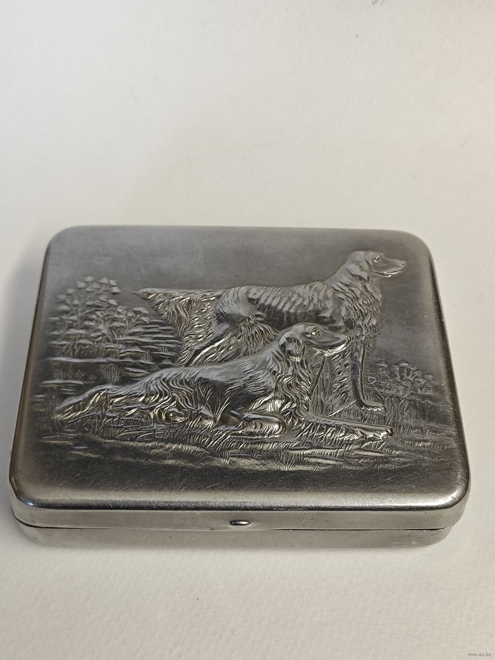 Папиросный "пузатый" портсигар "ДВА СЕТТЕРА" .СССР. Клеймо "нерж-сталь". Закрывается и открывается .Отличный экспонат в коллекцию или на подарок Бате. Папиросы добавлю бонусом. Состояние на фото.