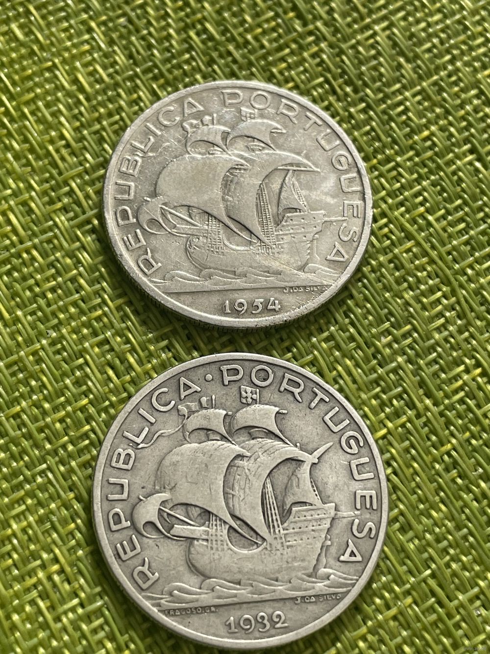 Португалия 10 эскудо 1954 г ( парусник , верхний лот )