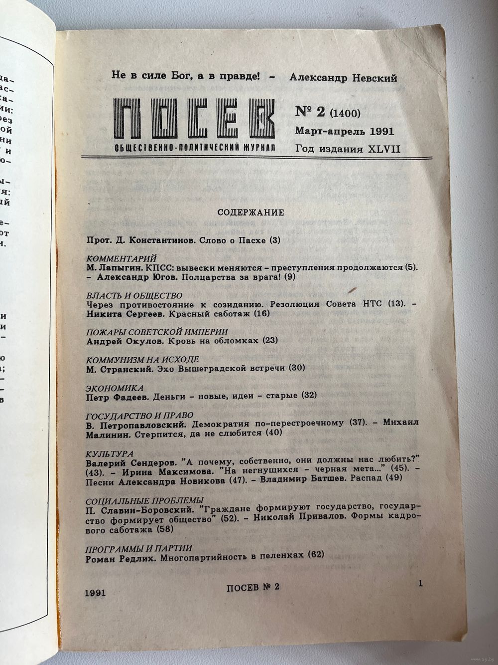 Посев. Март-апрель 1991
