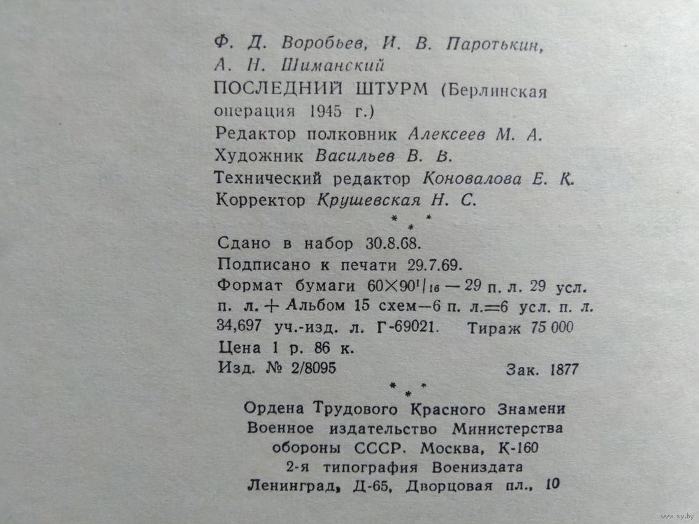 Книга «Последний штурм» рассчитана на офицеров и генералов Советских Вооруженных Сил, на читателей, интересующихся историей Великой Отечественной войны.