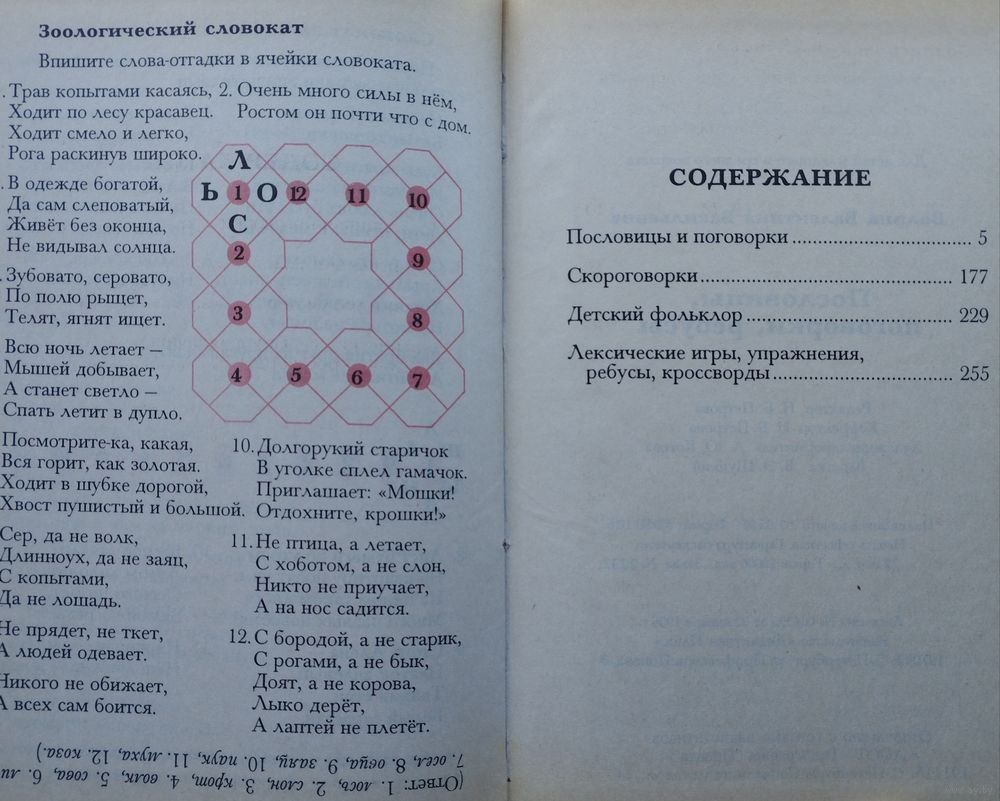 Большой формат. Тираж 20000 экз. 358 стр. Эта замечательная книга представляет собой сборник русских народных пословиц, поговорок, скороговорок, содержит рассказы о поговорках, лексические упражнения, игры, ребусы, загадочные головоломки. Дается история происхождения многих пословиц, состав которых значительно выходит за рамки школьной программы, расширяя художественно-поэтический кругозор школьников.