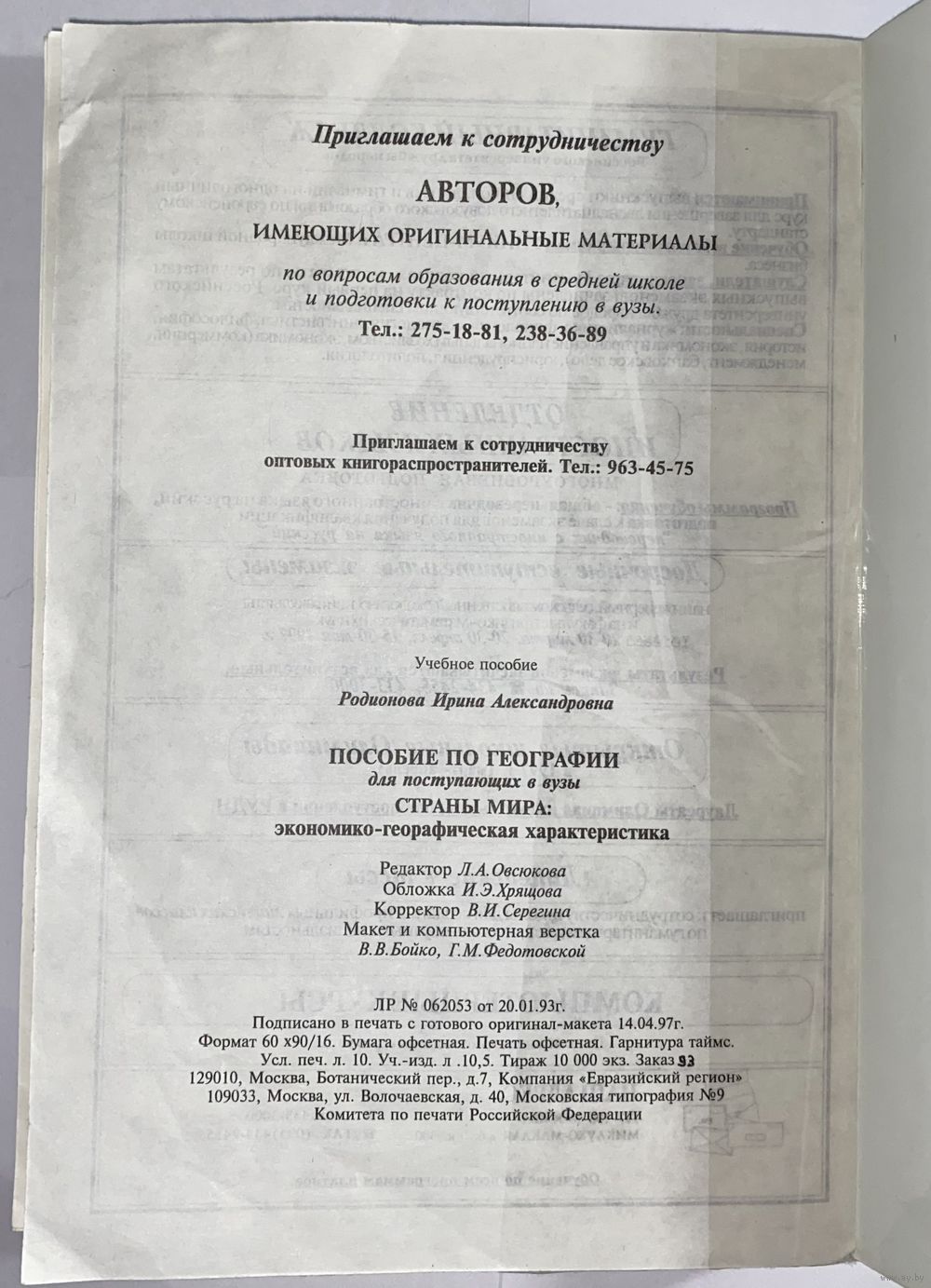 Пособие по географии для поступающих в вузы. И. А. Родионова. 1998г. 160стр.