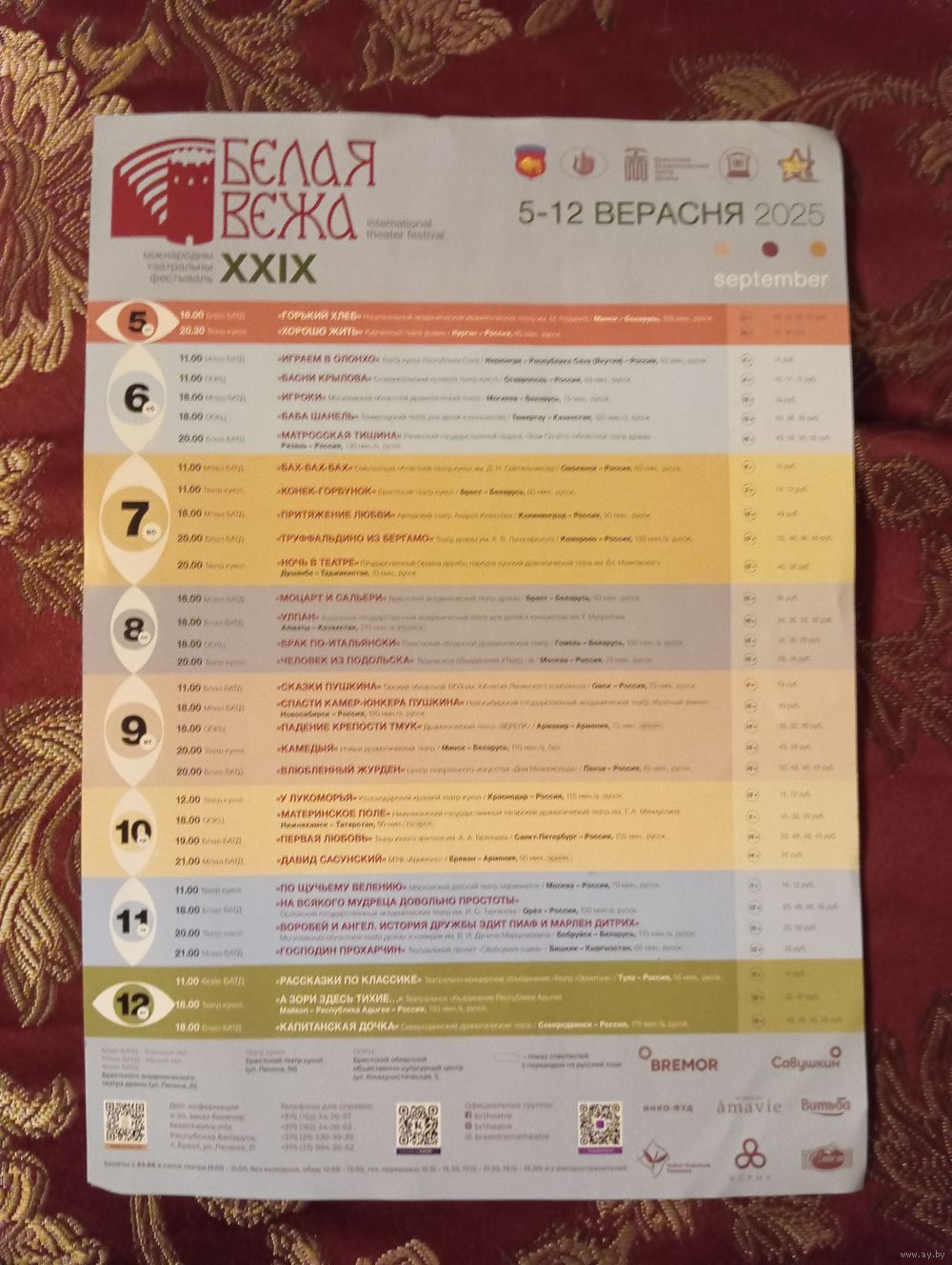 постер XXIX Международного театрального фестиваля «Белая Вежа», который прошёл в Бресте, Беларусь, с 5 по 12 сентября 2025 года.
