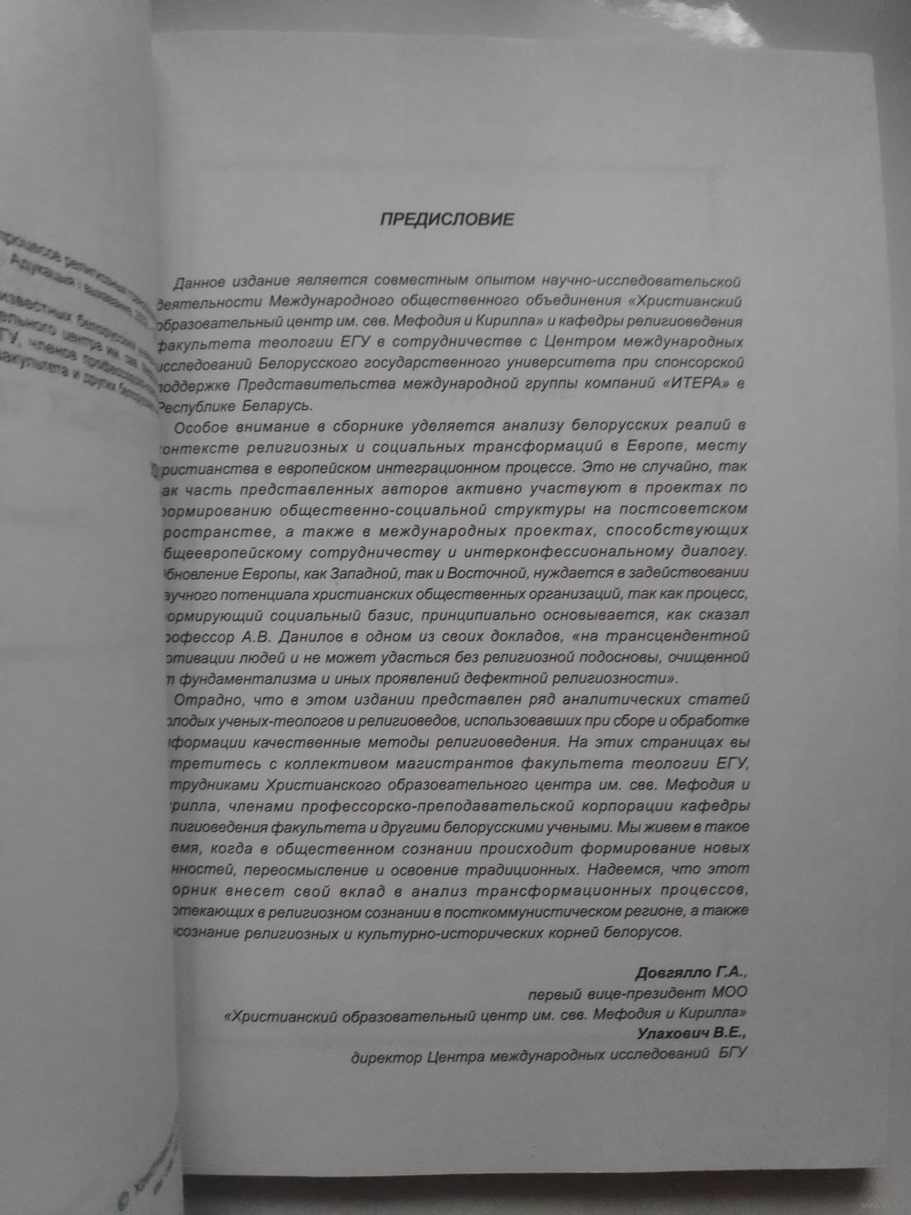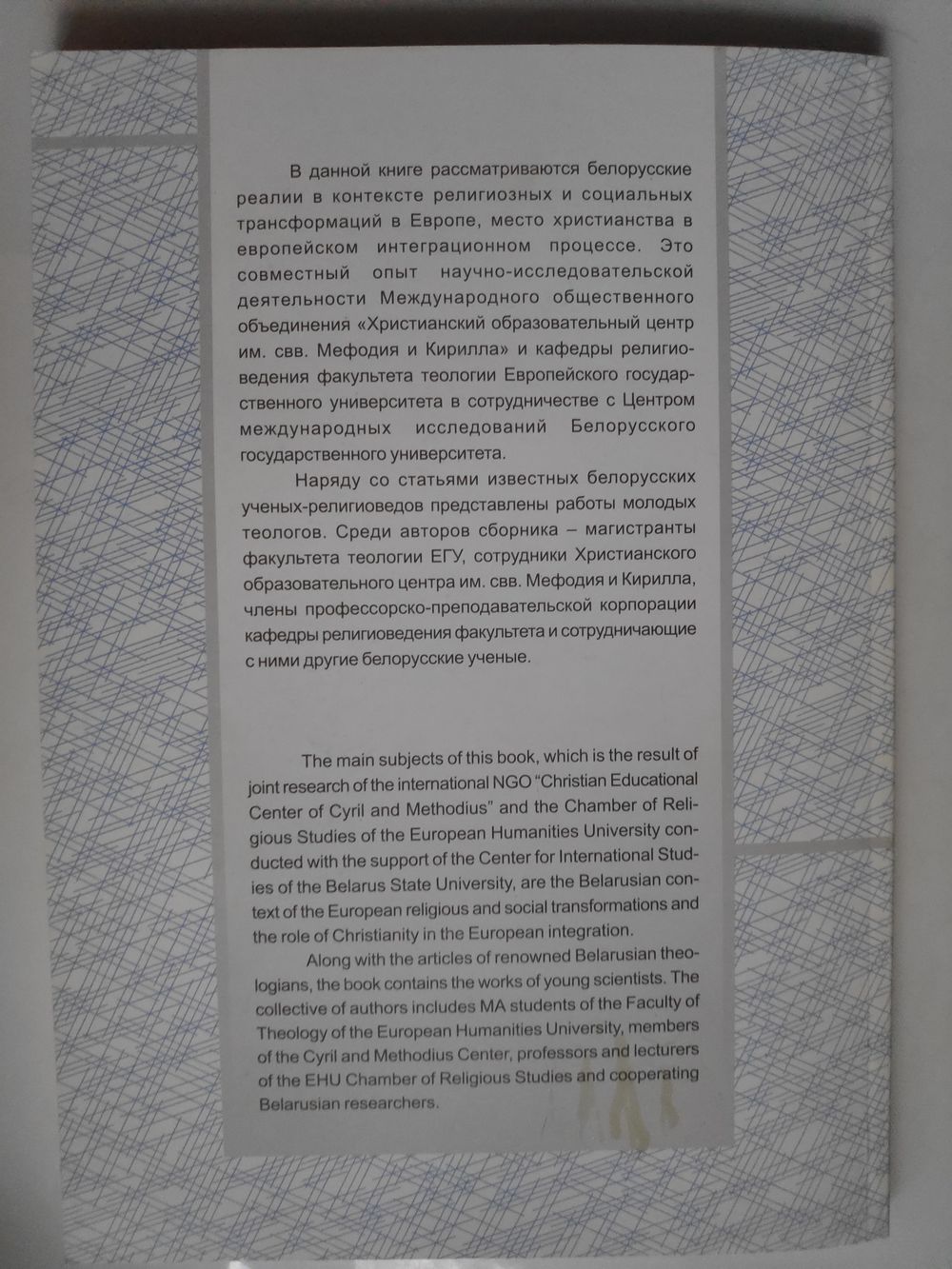 В книгу включены научные статьи известных белорусских ученых-религиоведов, сотрудников Христианского образовательного центра им. свв. Мефодия и Кирилла, магистрантов факультета теологии ЕГУ, членов профессорско-преподавательской корпорации кафедры религиоведения факультета и других белорусских ученых.