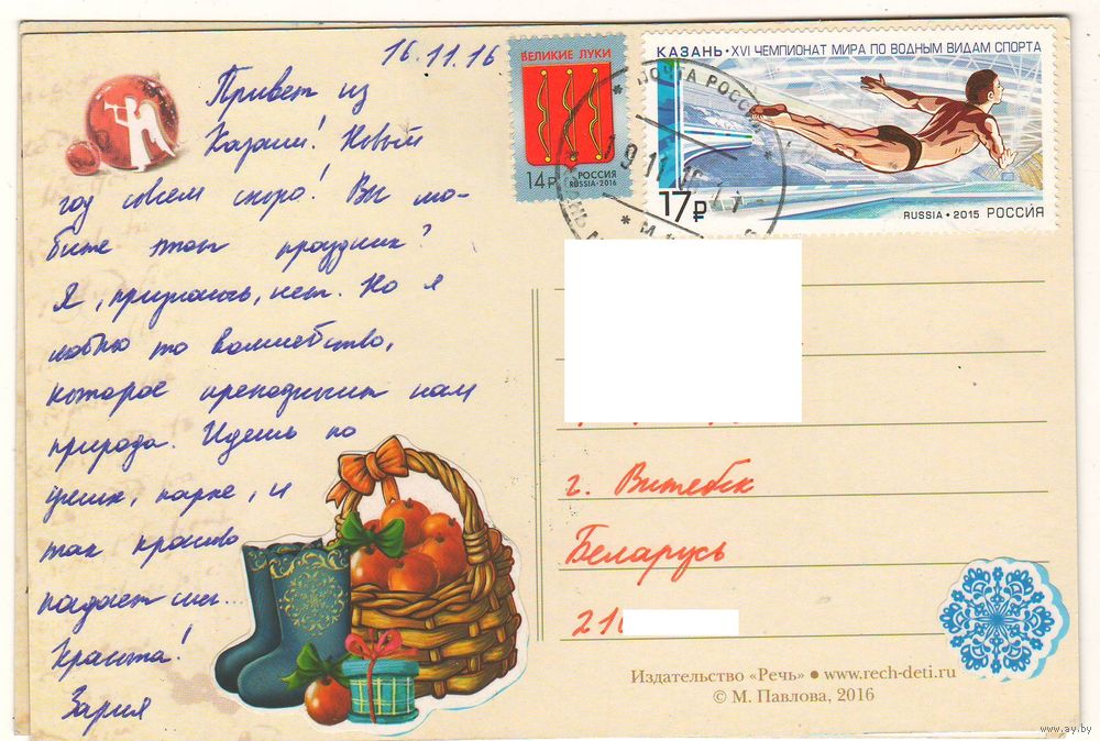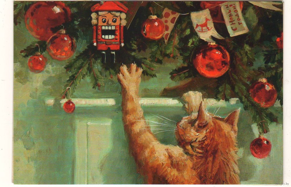 Посткроссинг. Новогодняя открытка: кот и щелкунчик, худ.М.Павлова (11,5х16,5), издательство "Речь". Прошла почту. Художественная марка. Передача в Витебске при личной встрече возле ратуши. Пересылка в другой город за счёт покупателя по тарифам Белпочты либо Европочты после 100% предоплаты.