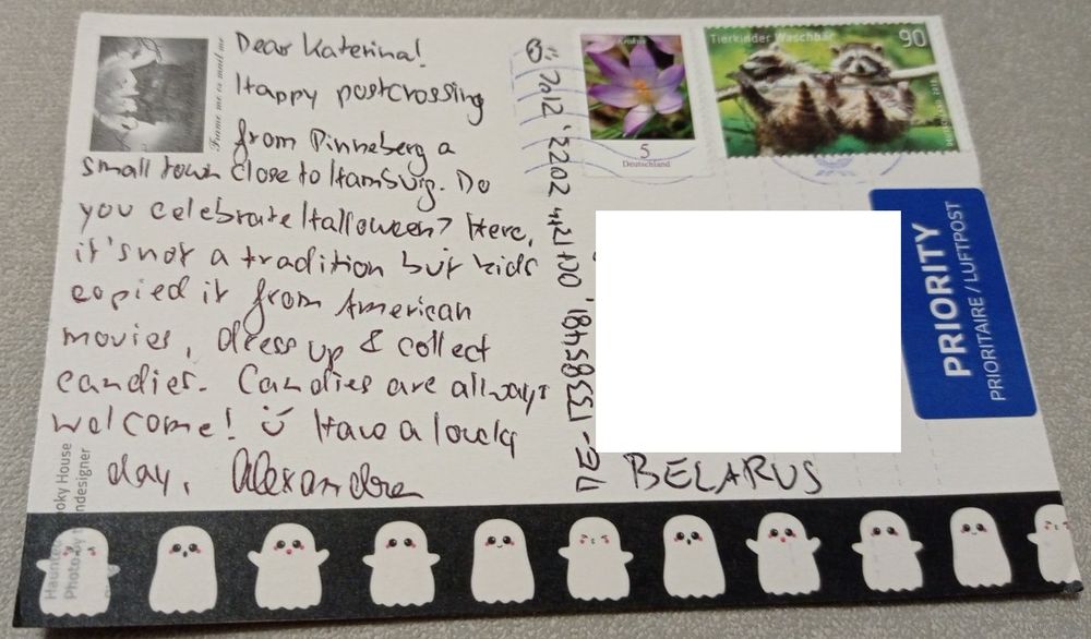 Посткроссинг. Открытка из Германии: дом привидений (10х15). Прошла почту. Художественные марки, чёткий штемпель. Передача в Витебске при личной встрече возле ратуши. Пересылка в другой город за счёт покупателя по тарифам Белпочты либо Европочты после 100% предоплаты.