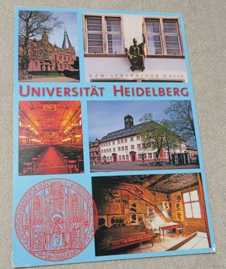 Посткроссинг. Открытка из Германии: Гейдельбергский университет (11х16). Прошла почту. Художественные марки, чёткий штемпель. Передача в Витебске при личной встрече возле ратуши. Пересылка в другой город за счёт покупателя по тарифам Белпочты либо Европочты после 100% предоплаты.