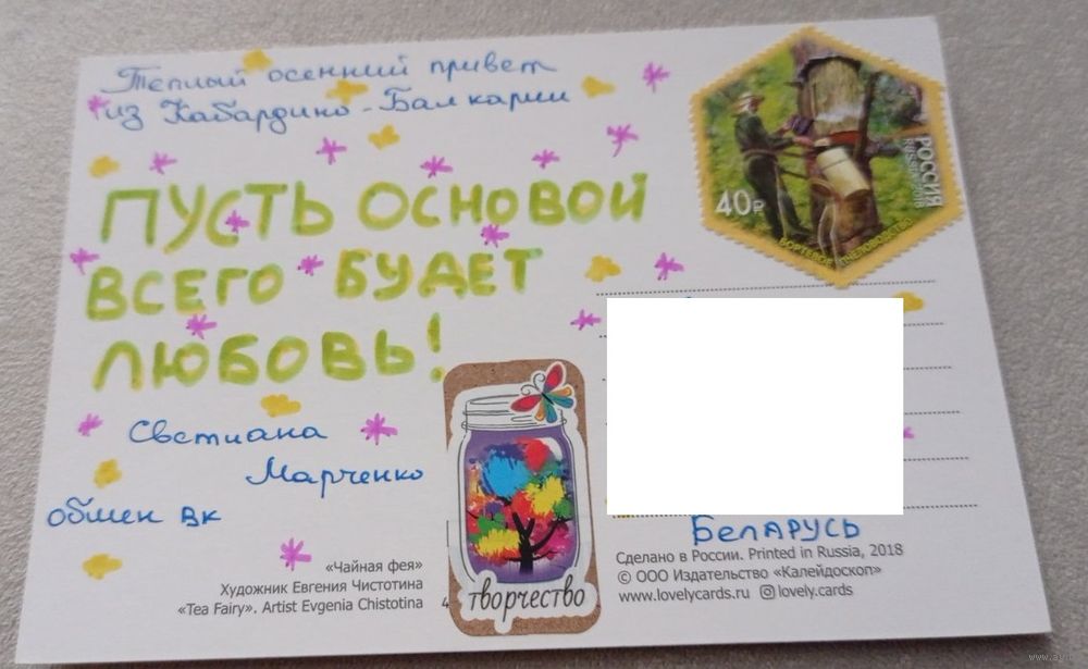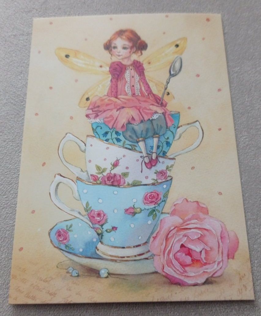 Посткроссинг. Открытка из РФ: "Чайная фея", худ.Евгения Чистотина (10х15). Подписана, художественная марка. Передача в Витебске при личной встрече возле ратуши. Пересылка в другой город за счёт покупателя по тарифам Белпочты либо Европочты после 100% предоплаты.