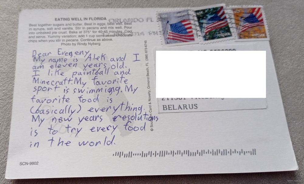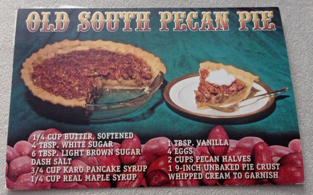 Посткроссинг. Открытка из США: Пекановый пирог, кулинария (10х15). Прошла почту. Марки, чёткий штемпель. Передача в Витебске при личной встрече возле ратуши. Пересылка в другой город за счёт покупателя по тарифам Белпочты либо Европочты после 100% предоплаты.