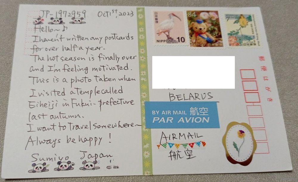 Посткроссинг. Открытка из Японии: храм в префектуре Фукуи (10х15). Прошла почту. Художественные марки.. Передача в Витебске при личной встрече возле ратуши. Пересылка в другой город за счёт покупателя по тарифам Белпочты либо Европочты после 100% предоплаты.