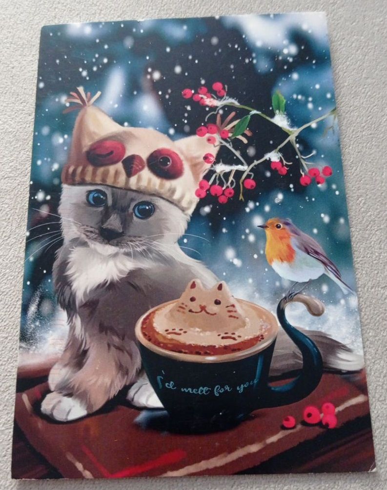 Посткроссинг. Открытка "Капуччино", худ.Лорри Кайенна (10х15). Прошла почту. Марки, чёткий штемпель. Передача в Витебске при личной встрече возле ратуши. Пересылка в другой город за счёт покупателя по тарифам Белпочты либо Европочты после 100% предоплаты.