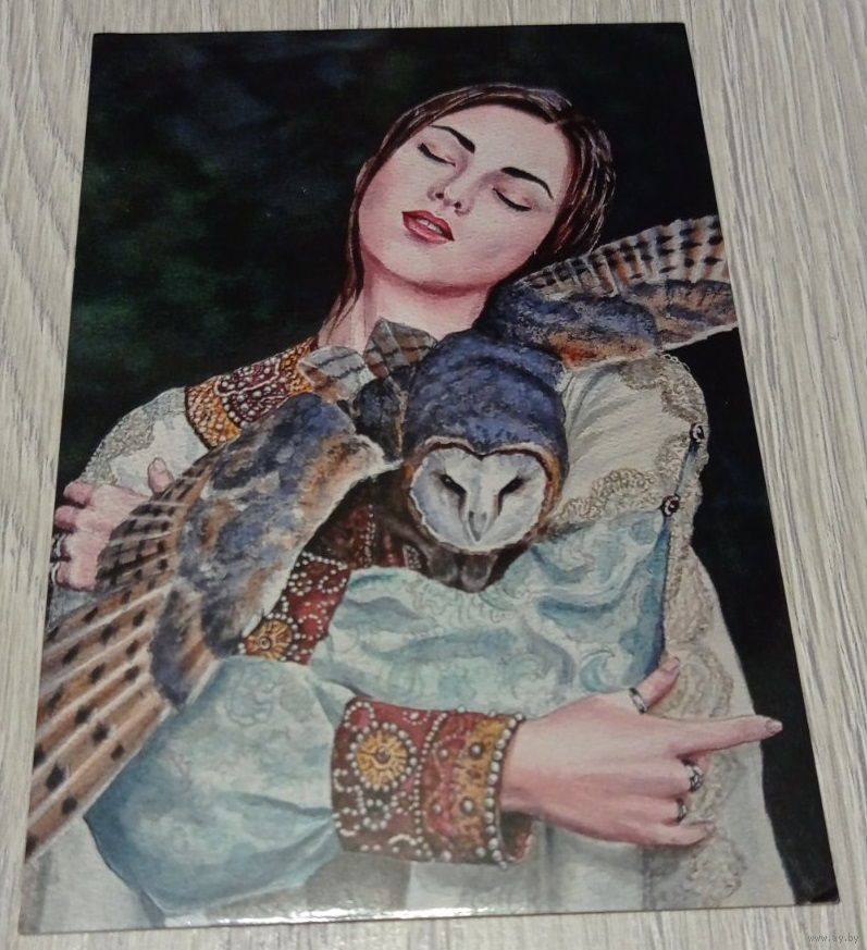 Посткроссинг. Открытка "Красавица с совой" (10х15). Прошла почту. Художественная марка, чёткий штемпель первого дня гашения. Передача в Витебске при личной встрече возле ратуши. Пересылка в другой город за счёт покупателя по тарифам Белпочты либо Европочты после 100% предоплаты.