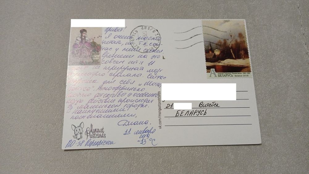 Посткроссинг. Открытка Русалка (10х15). Прошла почту. Художественные марки, чёткий штемпель. Передача в Витебске при личной встрече возле ратуши. Пересылка в другой город за счёт покупателя по тарифам Белпочты либо Европочты после 100% предоплаты.