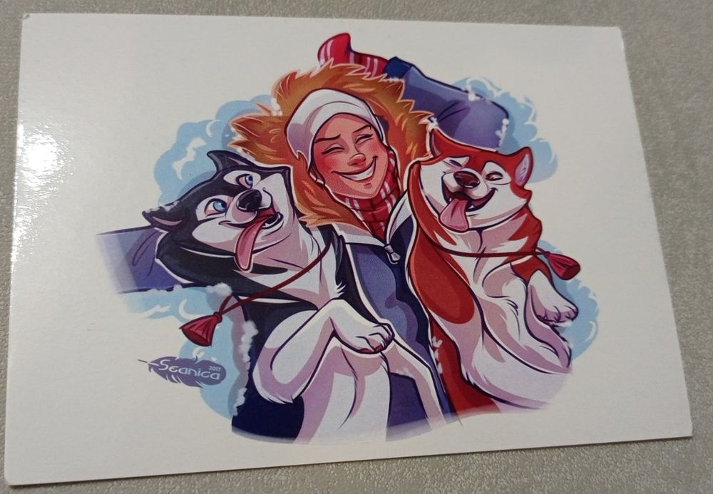 Посткроссинг. Открытка "С хаски не соскучишься", худ.Анастасия Серебренникова (10х15). Прошла почту. Художественные марки, чёткий штемпель. Передача в Витебске при личной встрече возле ратуши. Пересылка в другой город за счёт покупателя по тарифам Белпочты либо Европочты после 100% предоплаты.