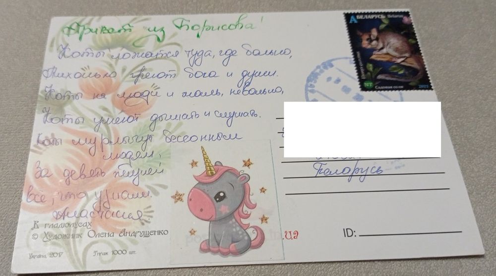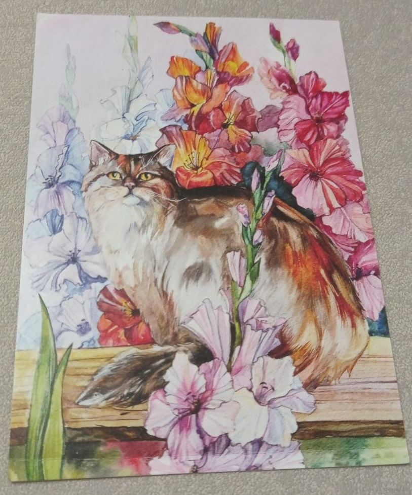 Посткроссинг. Открытка "В гладиолусах", худ.Елена Андрющенко (10х15). Прошла почту. Художественные марки, чёткий штемпель. Передача в Витебске при личной встрече возле ратуши. Пересылка в другой город за счёт покупателя по тарифам Белпочты либо Европочты после 100% предоплаты.