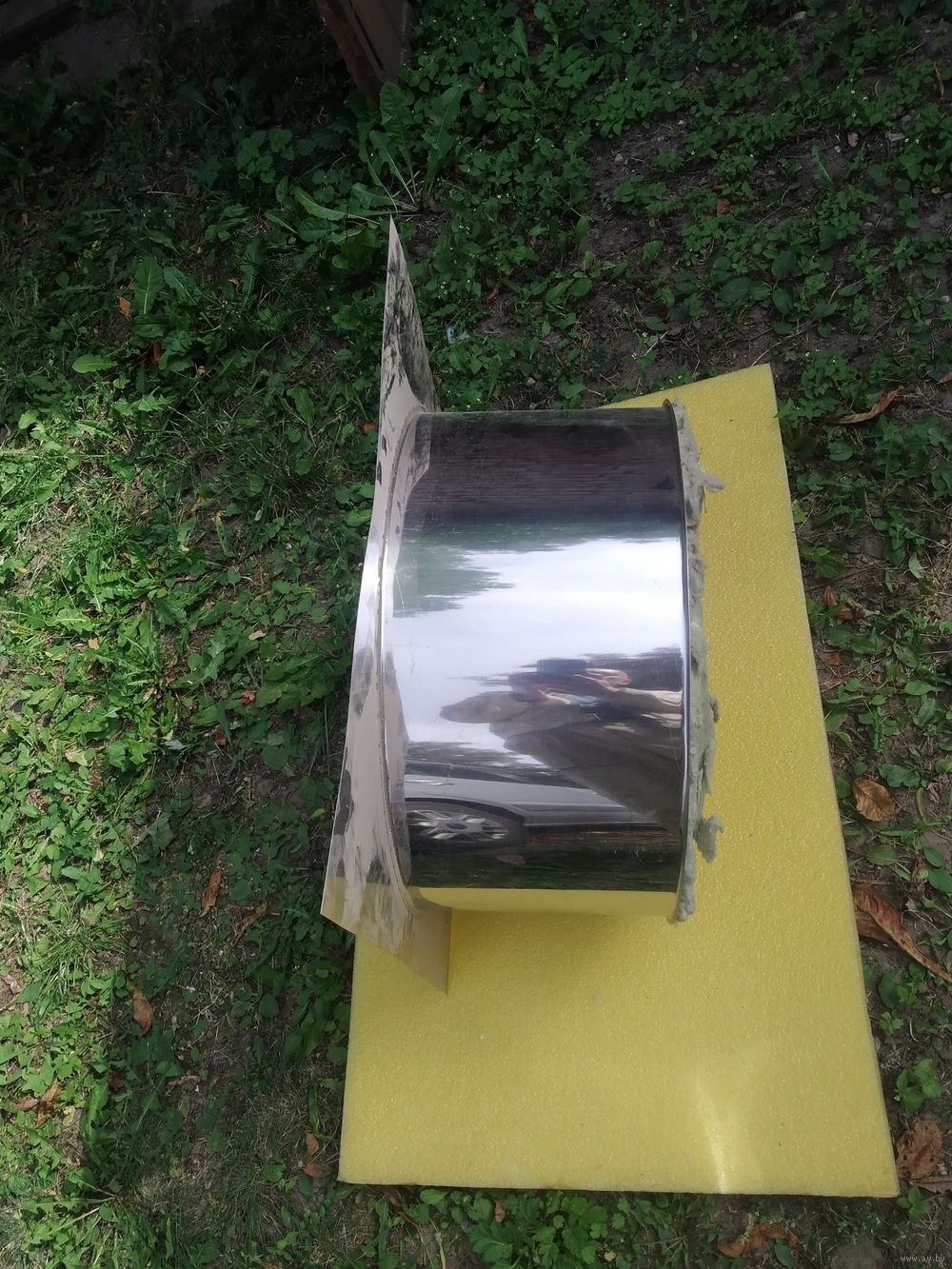 В отличие от дешевых ППУ, представляющих собой коробку с дыркой из оцинковки (которая крайне вредна для бани, поскольку испускает при нагревании пары цинка), ЭТОТ имеет дополнительный внутренний контур, экранирующий минвату от трубы-сэндвич.