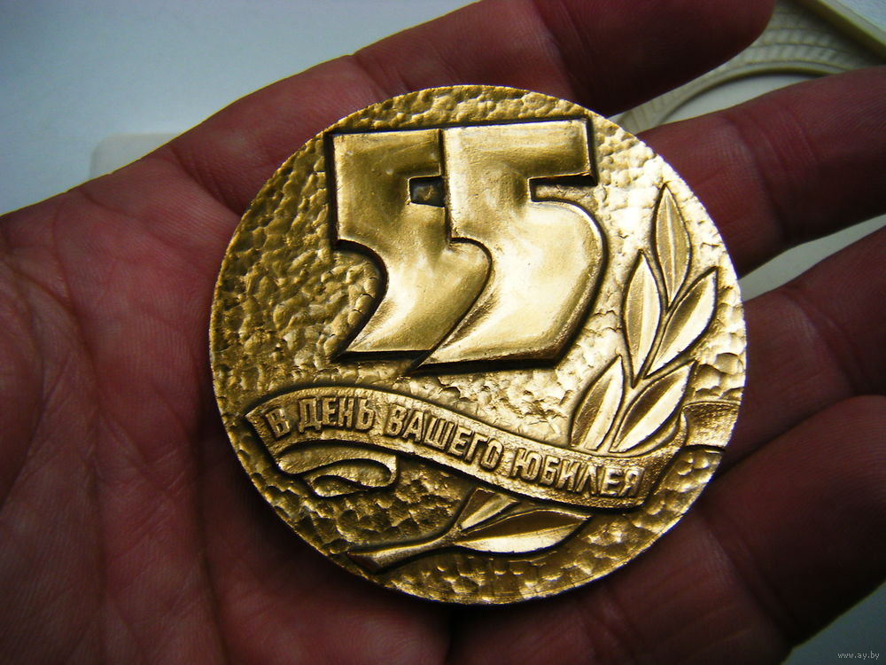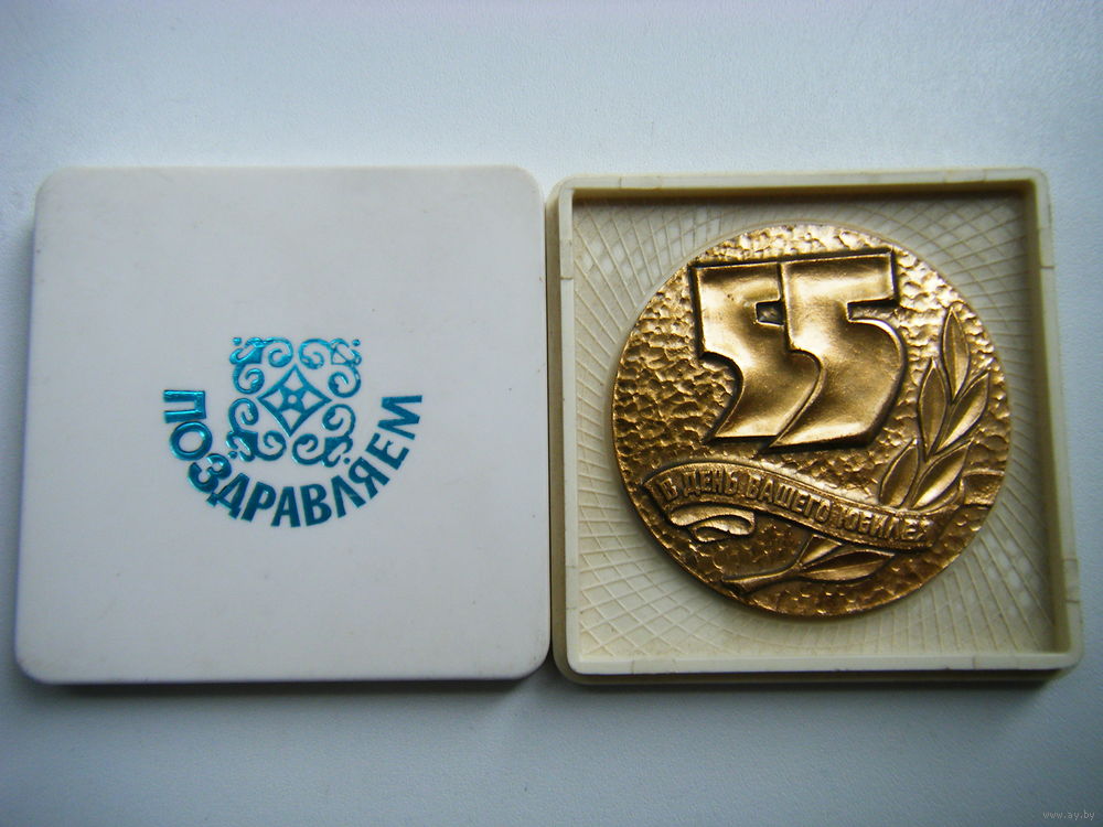 Поздравительная не подписанная!!! Настольная медаль на 55летие