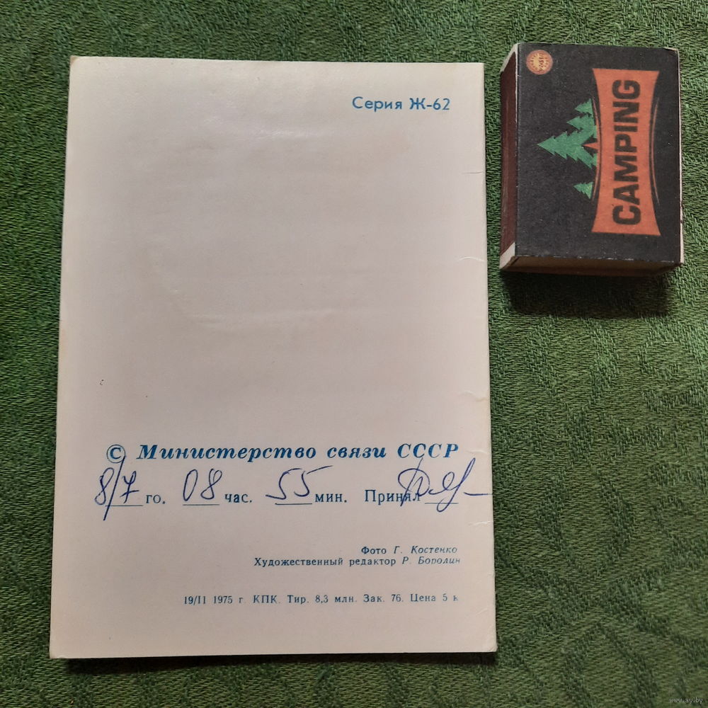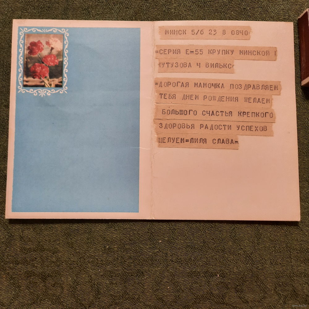 Поздравительная телеграмма на открытке, 1975г.