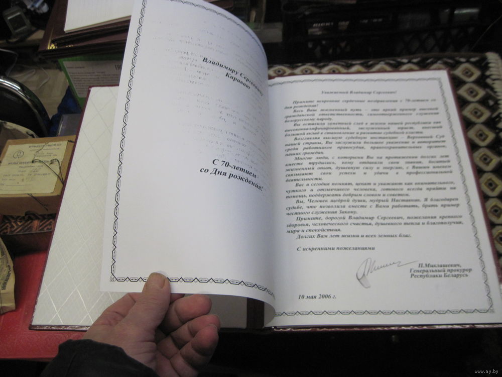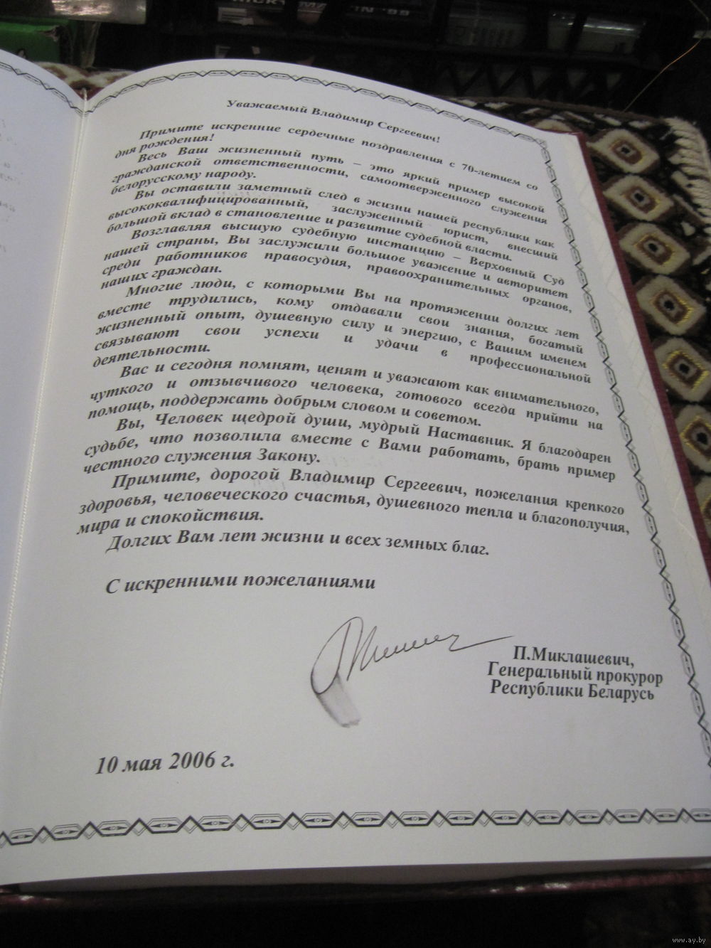 Поздравительный адрес 2000 г. известному государственному деятелю БССР И РБ от Генпрокурора РБ. Торги!