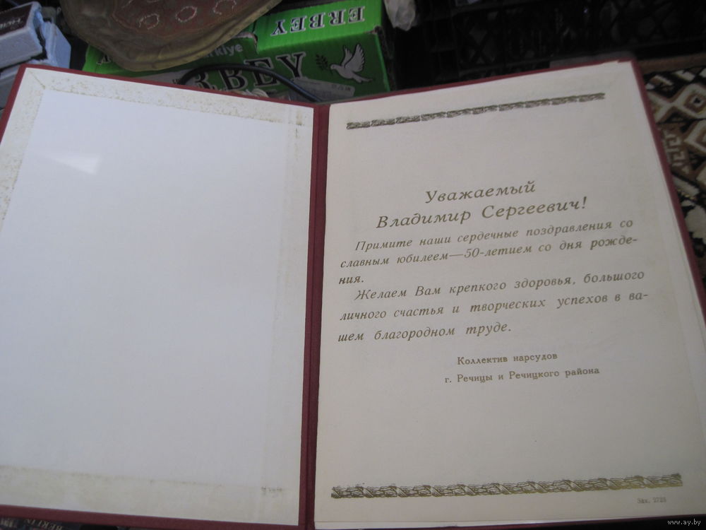 Поздравительный адрес известному государственному деятелю БССР и РБ от Коллектива нарсудов Речицы и Речицкого района. Торги!