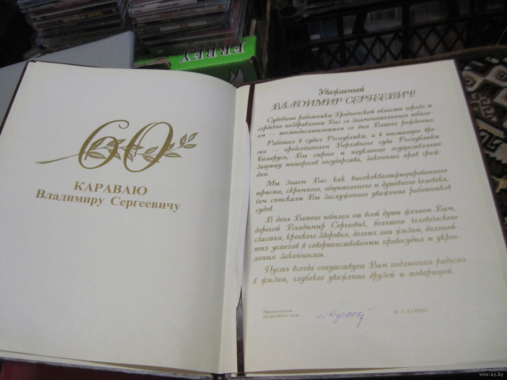 Поздравительный адрес Председателя Гродненского областного Суда известному государственному деятелю БССР и РБ. Торги!