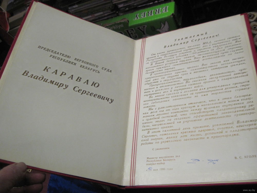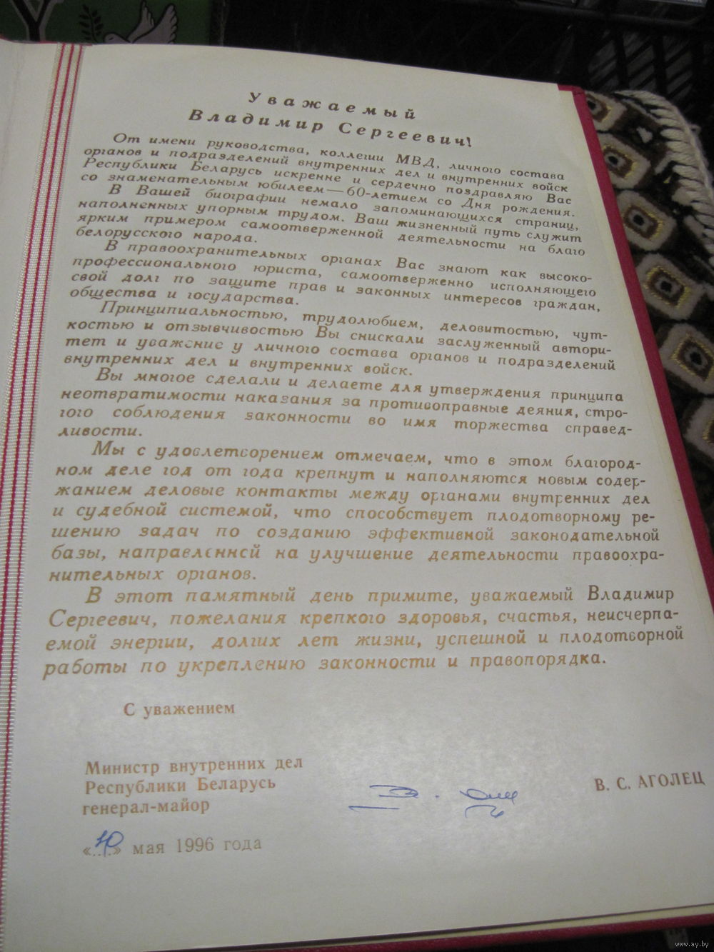 Поздравительный адрес юбиляру-государственному деятелю БССР и РБ 1996 г. Торги!