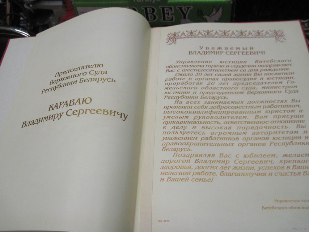 Поздравительный адрес юбиляру-государственному деятелю БССР и РБ. Торги!