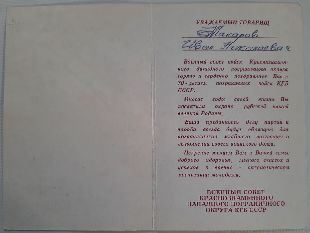 Поздравительный бланк, размером 80 х 120 мм., в хорошем состоянии.